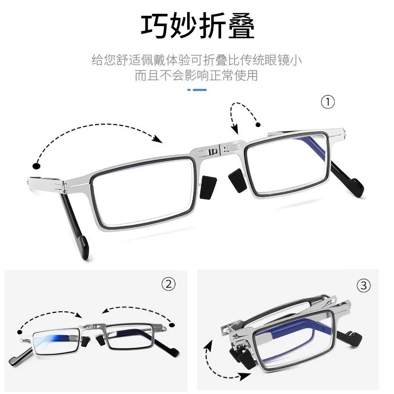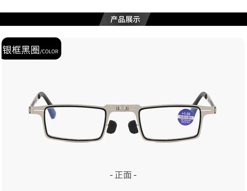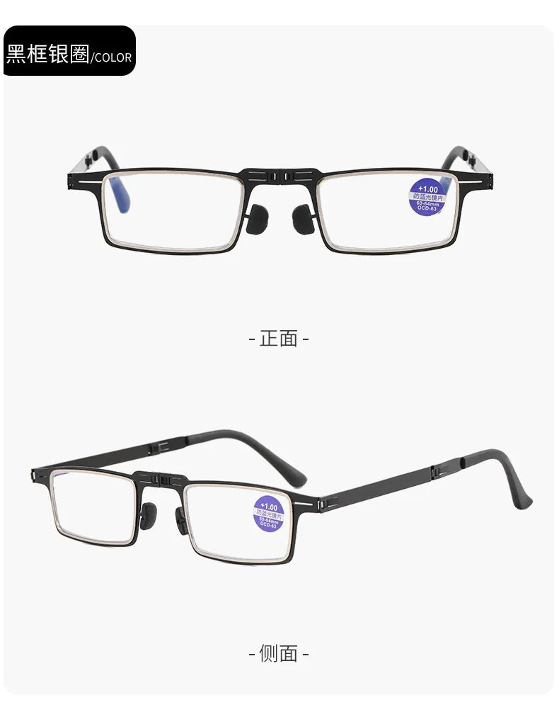 Anti Blue Light eye glasses Square Reading Glasses Blocking Reader Folding Ultra Thin Unisex Metal Eyeglasses