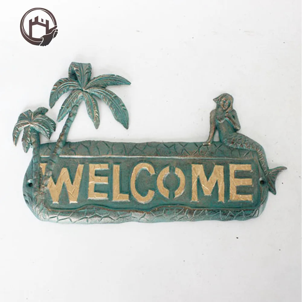 Antique cast iron metal handicrafts home retail store wall mount welcome sign decorative piece for sale
