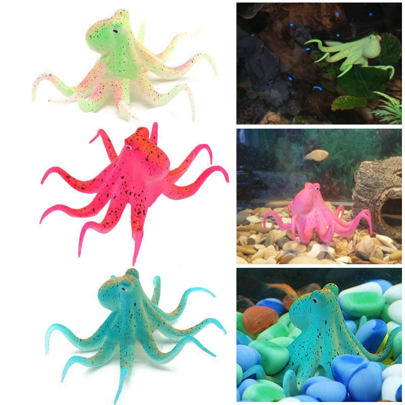 Aquarium Decoration Artificial Octopus Fluorescent Fish Tank Decoration Silicone Octopus with Suction Cup Aquarium Accessories