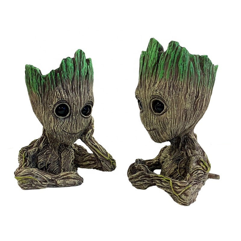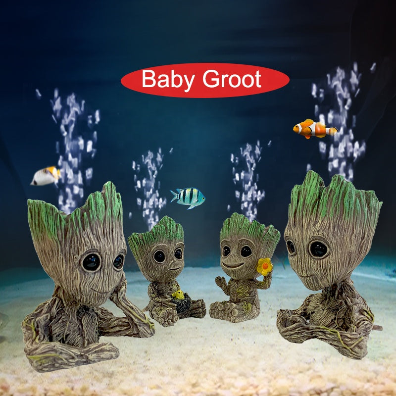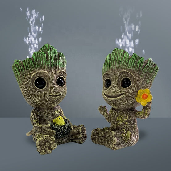 Aquarium ornament cute resin tree man figure fish tank decoration with bubble oxygen pump