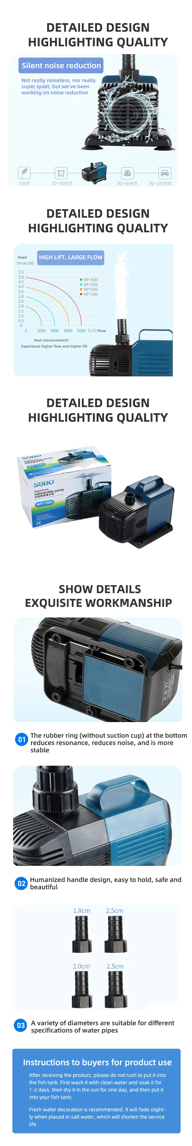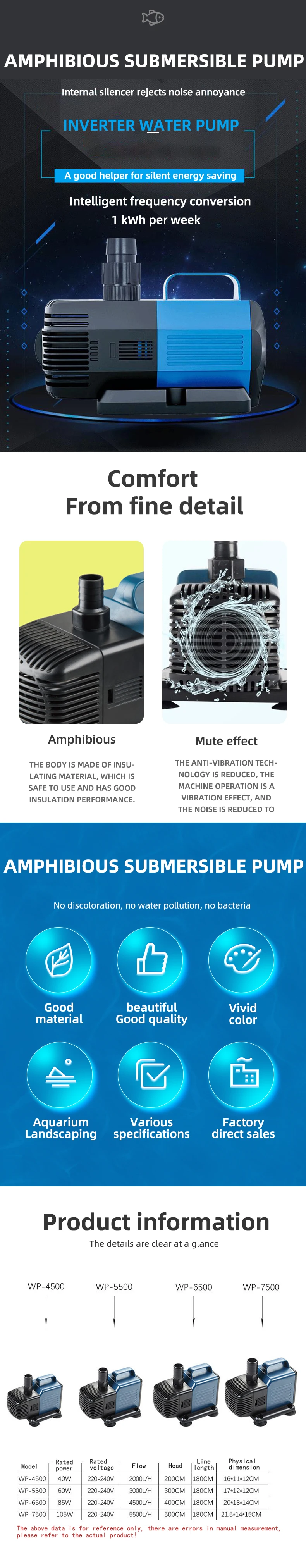 Aquarium Submersible Water Pump 40-105W Fountain Filter Fish Pond Quiet Water Pump Tank Fountain Side Suction Pump
