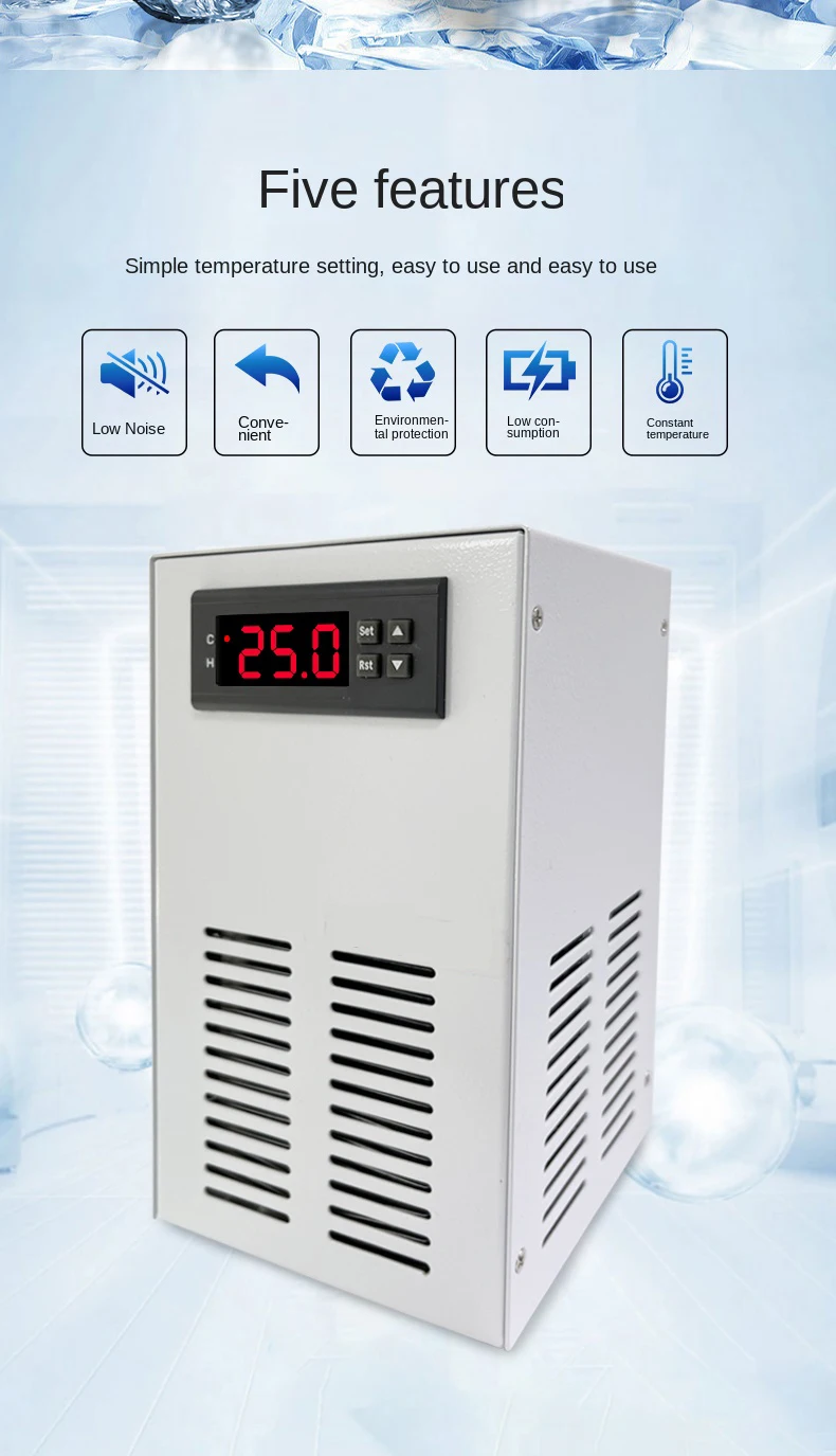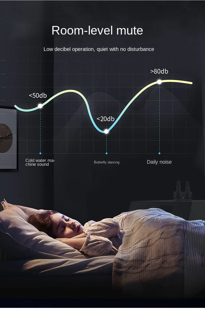 operating sound: about 20 decibels, the use of deep-sea noise reduction fan, rotor roller running low decibels, noise is far lower than the compressor cooling chiller, does not affect you and your family's sleep and entertainment, home of choice