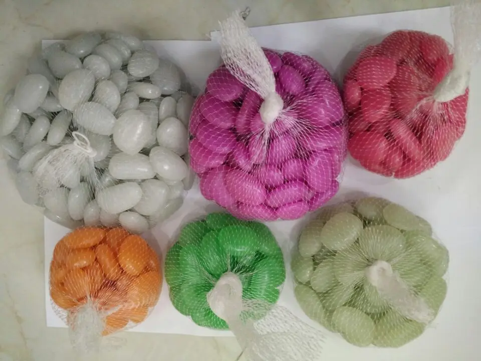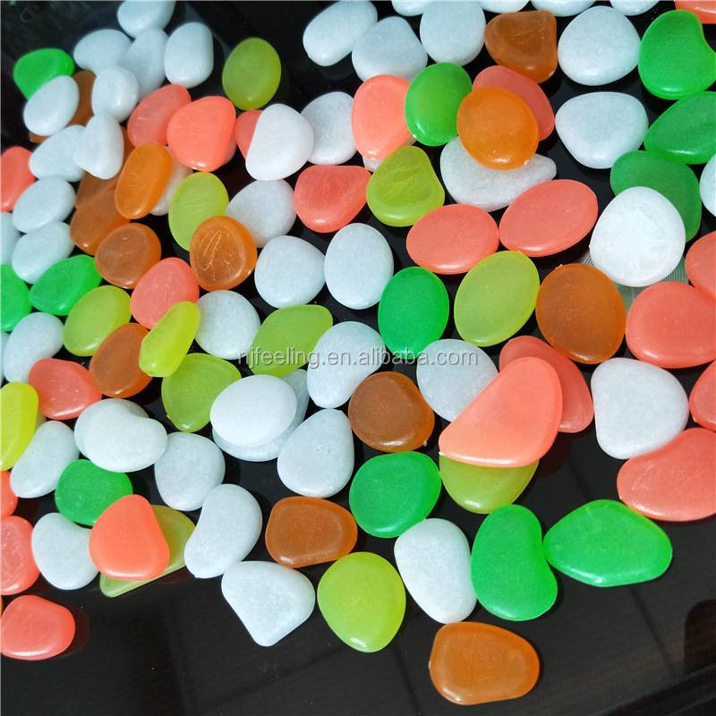 Glow Pebble is widely used in landscaping,driveway,kids toy,Christmas Gift,kitchen counter tops.There are three kinds of glow stone in our factory:Resin,Glass and Plastic.16 colors for customer's choice.