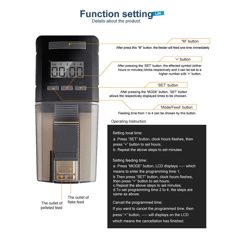 Automatic Aquarium Fish Feeder with LCD Display Adjustable Outlet Fish Food Dispenser Auto Fish Feeder With Digital Timer