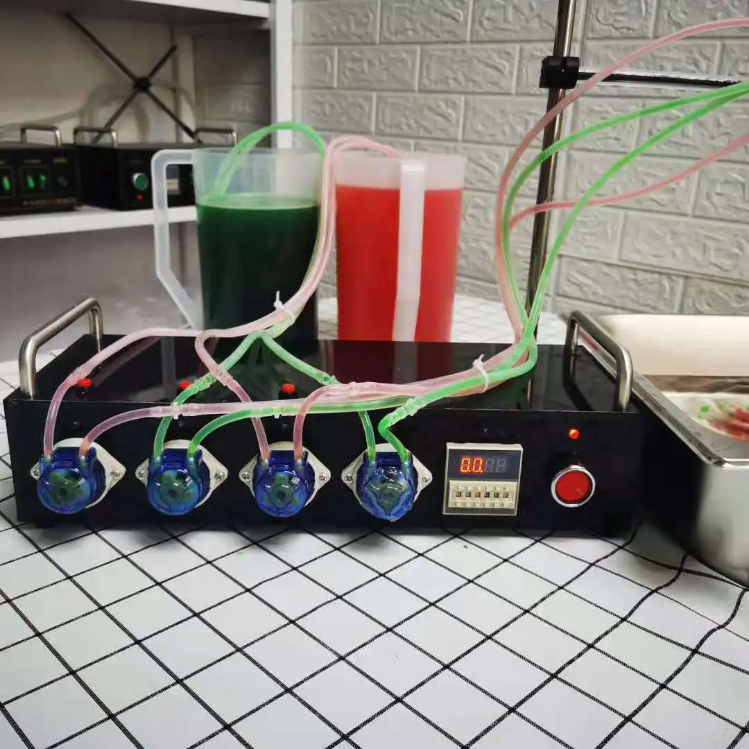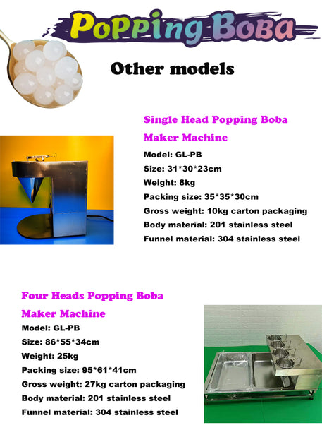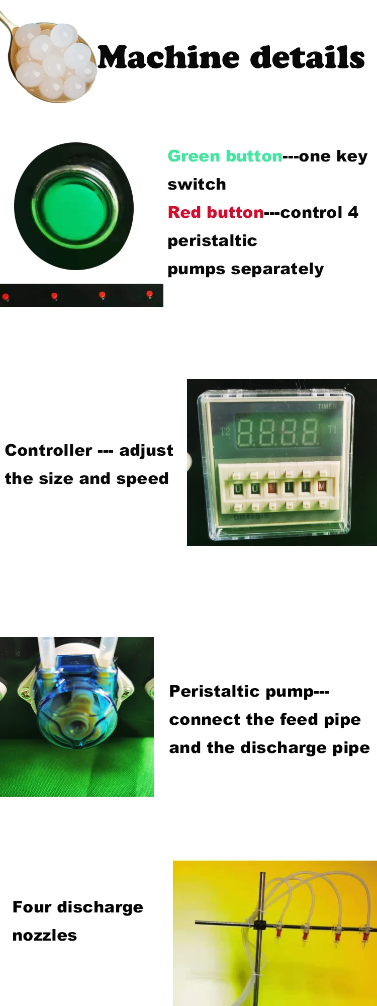 This popping boba forming machine can be used alone to make bursting beads; it can also be used as an automatic feeder for single-head or four-head popping boba machines.