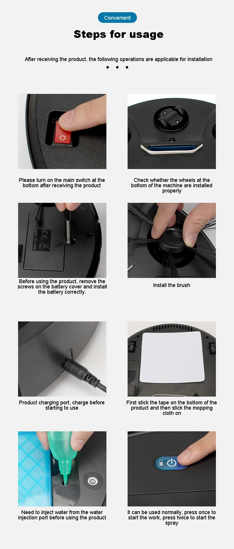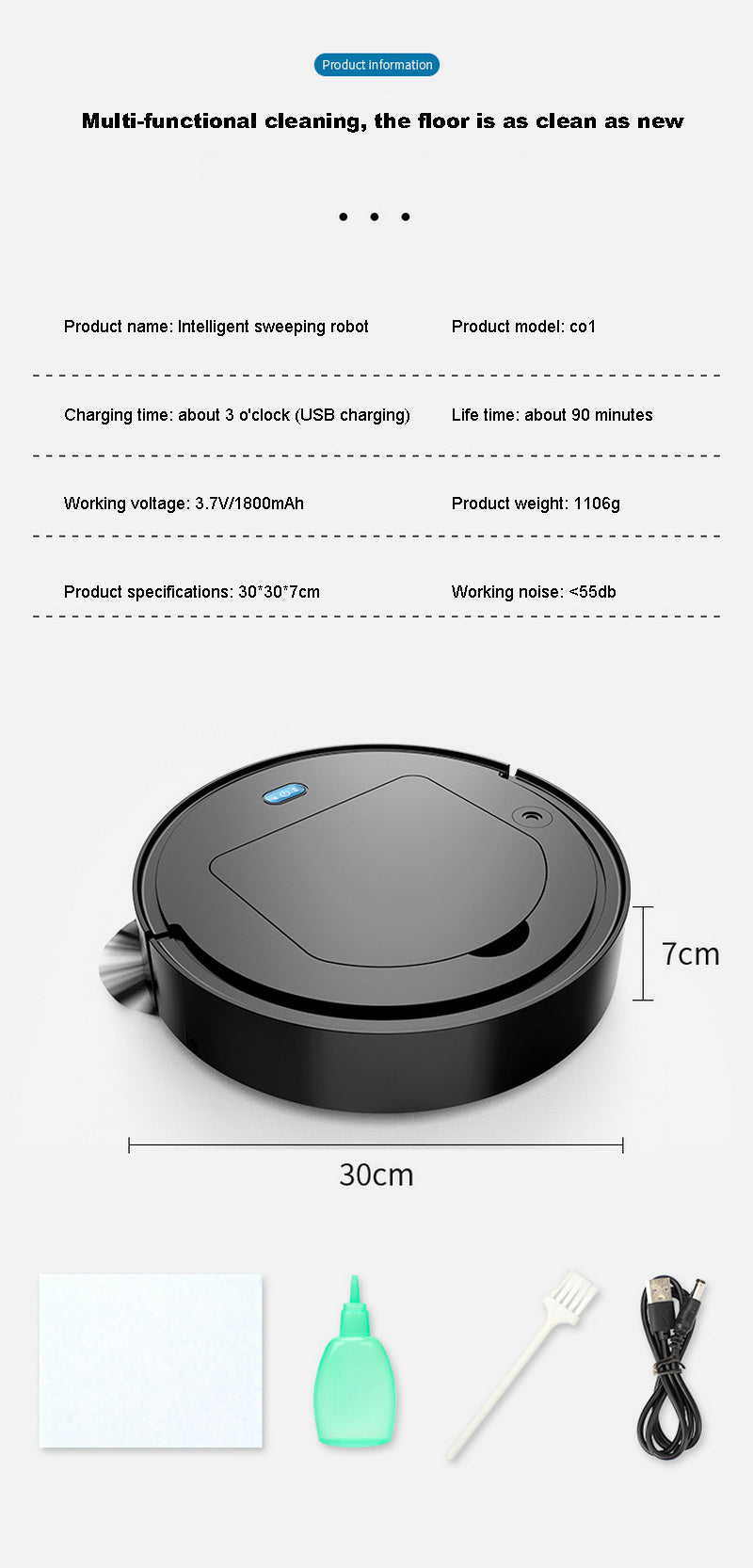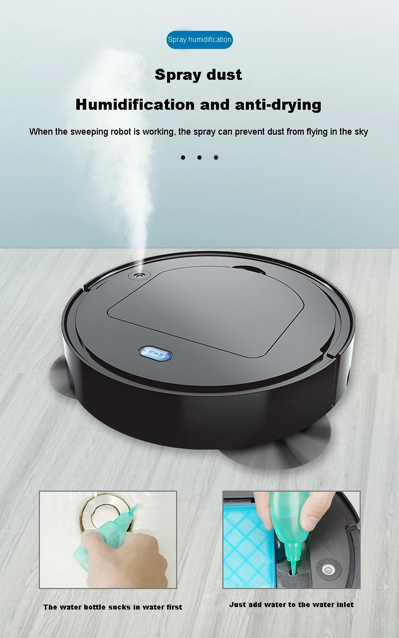 Automatic Robot 3 In 1 Smart Wireless Sweeping Vacuum Cleaner with Spray Dry Wet Floor Mop Cleaner Rechargeable Cleaning Machine
