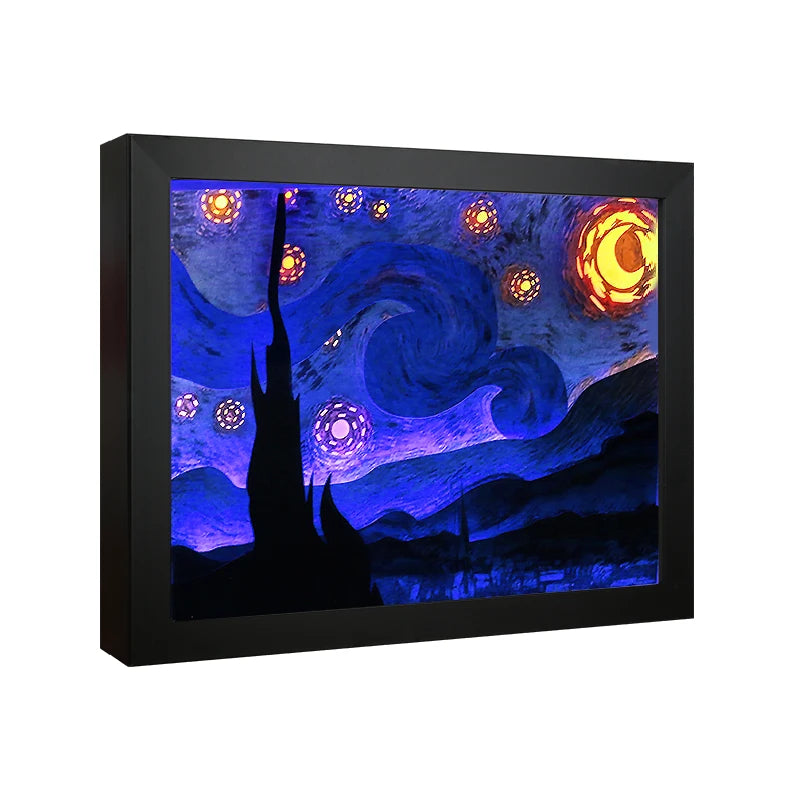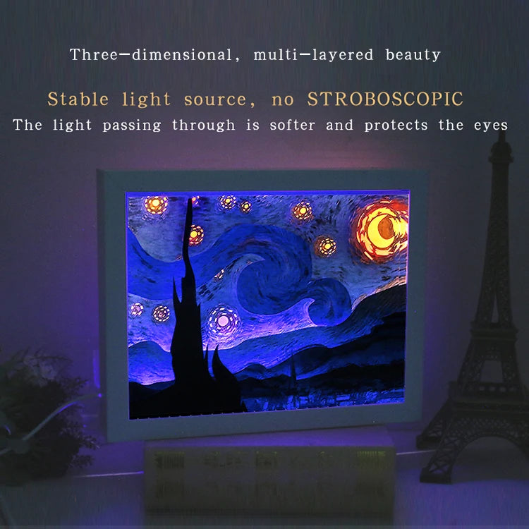 Automatically colour change paper craft shadow picture box frame 3D wall art photo frame paper cut light box For Home Decoration