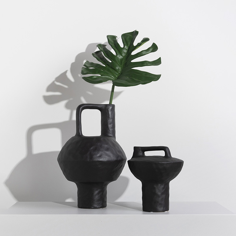B&b With Handle Set Of Four Black Ceramic Ornaments
