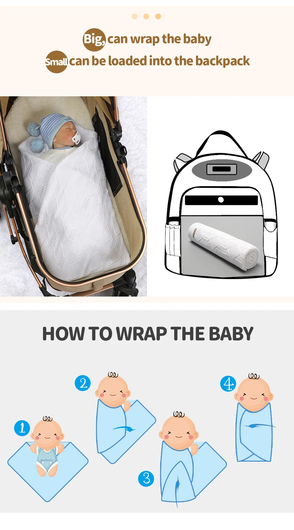 Baby Blankets Super Soft Newborn Cotton Knitted Stroller Nursery Security Quilt