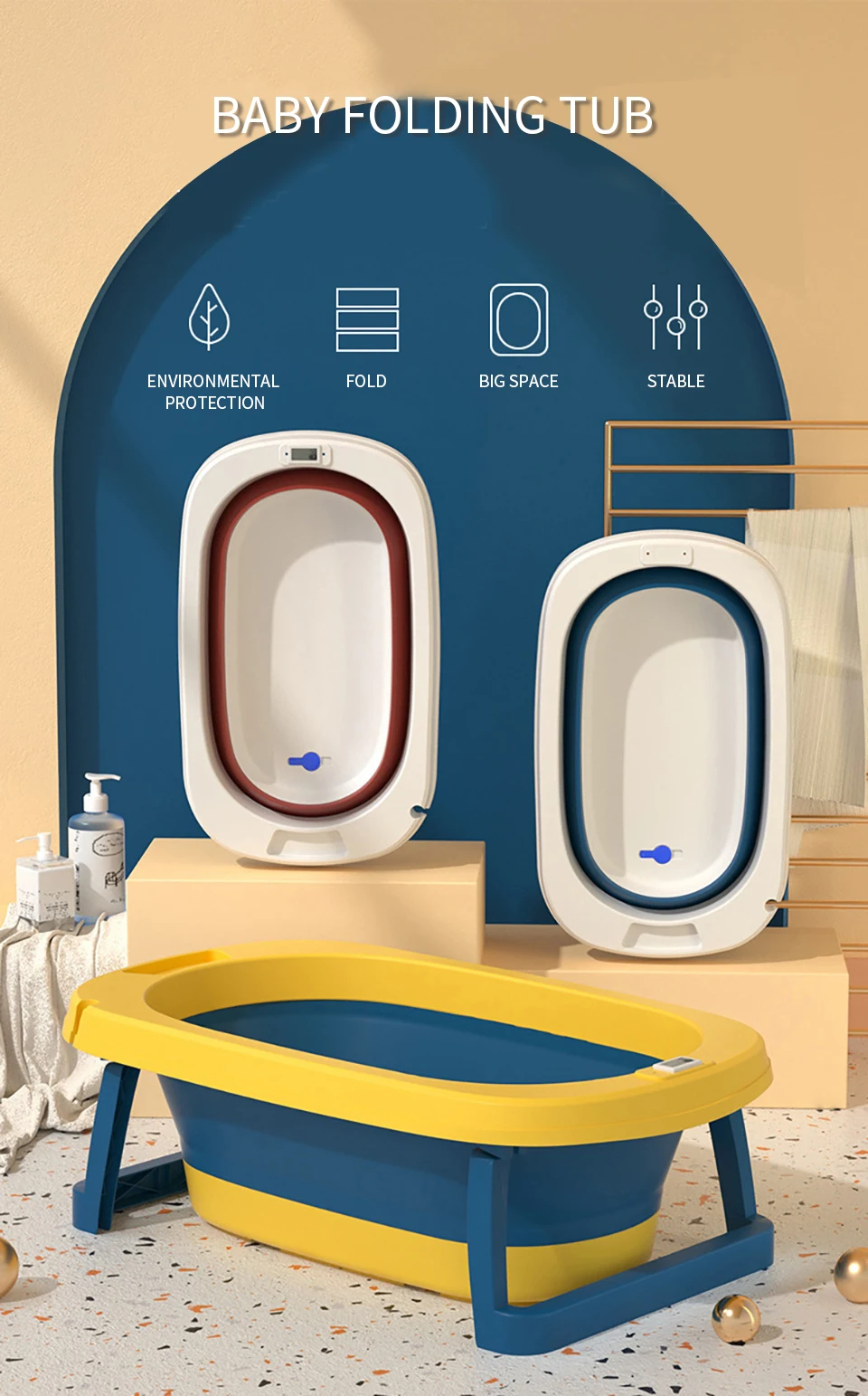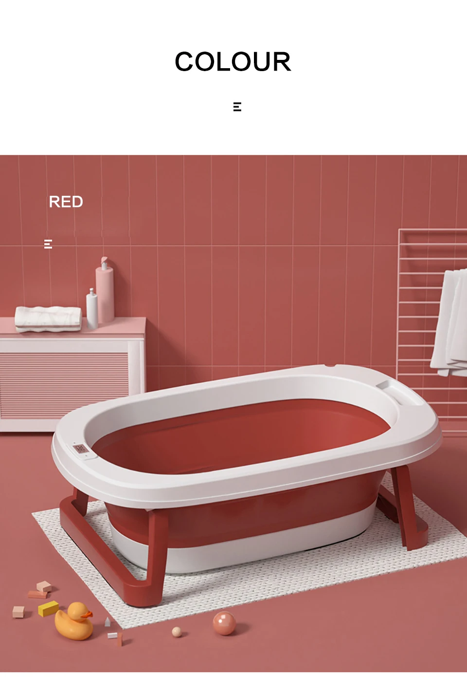 Baby Folding Bath Tub Large Household Shower Bathtub With Smart Thermometer