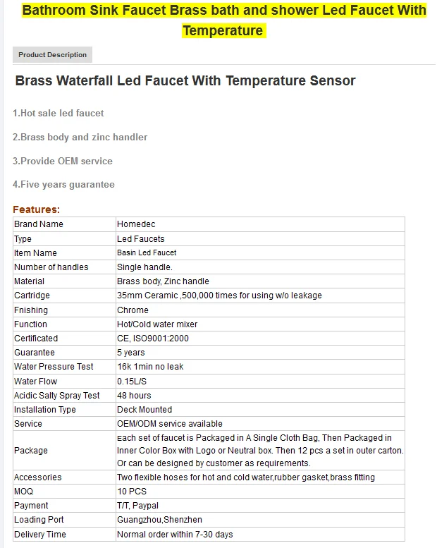 Bathroom Sink Faucet Brass bath and shower Led Faucet With Temperature Sensor