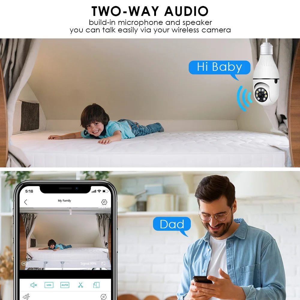 BESDER 3MP Bulb Security Camera E27 Two-way Audio 2.4GHz PTZ Wifi Camera CCTV Hidden Camera for Home