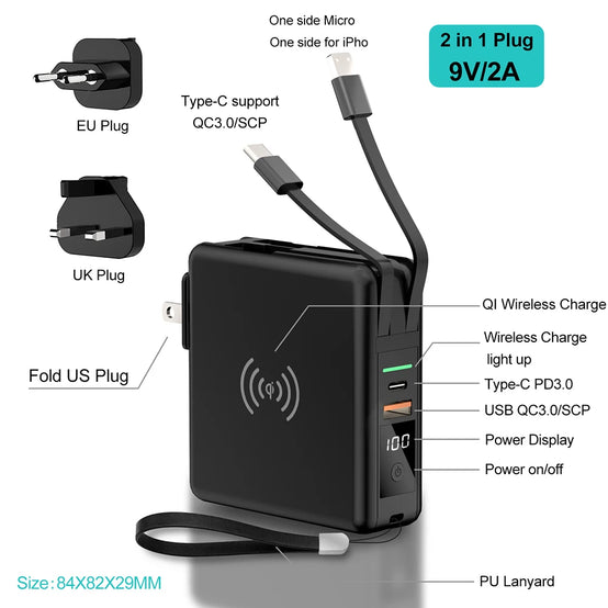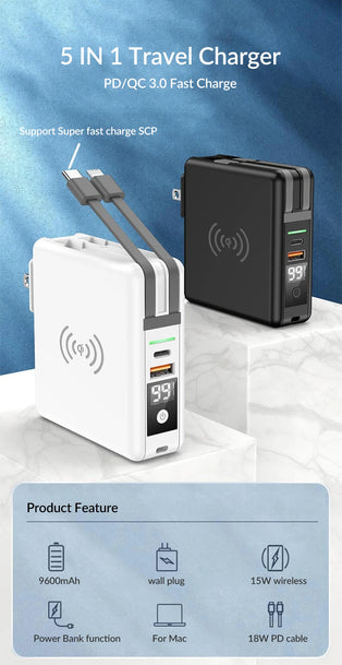 Best selling products 2023 PD20W Portable Wall Chargers Travel Power Bank 5 in 1 Travel Super Charger US Adapter Plug 10000mah