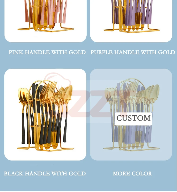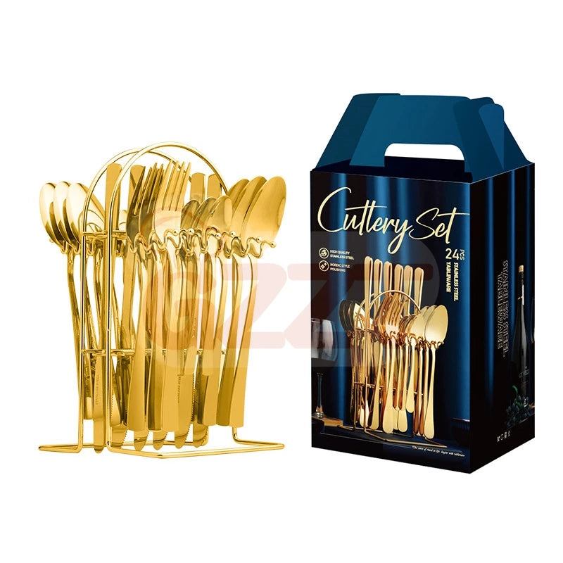 Best Selling Stainless Steel Knife Fork Spoon Set 24Pcs Gold Flatware Luxury Cutlery Set With Stand
