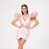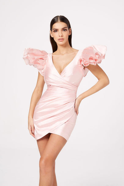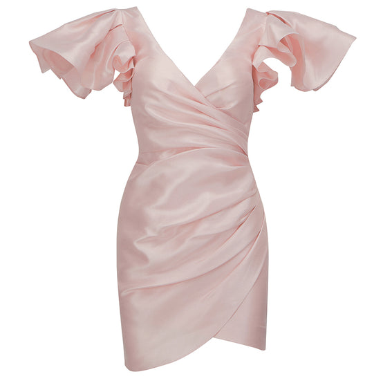 Romantic Fashion Women Dresses Ruffle Sleeve Sexy V-Neck Solid Color Pink Sweet Women Dress