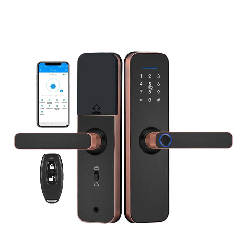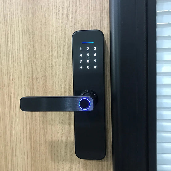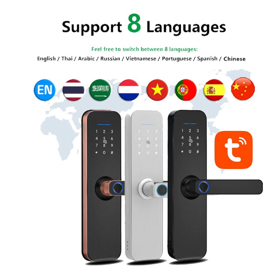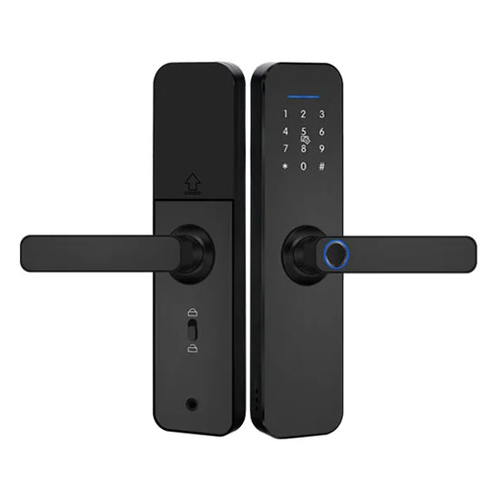 1.Compatible with various mortise to fit 99% doors. single latch60/70, European 5050/ 6050 / 3585/ 4585/ 6085/ 6072 / 5572 2. 6 ways to unlock: WiFi Tuay APP Access, BLE TTLock APP Access, Fingerprint Unlock, PIN Code, Card, Mechanical Key Unlock. 3. Convenient APP management system, you can manage your smart lock anytime and anywhere; 4. You can manage a large number of locks with just one phone; 5. Simple Door Handle settings, suitable for various scenarios; 6. Multi-level administrator settings to help you better manage your smart buildings; 7. Query unlock records anytime and anywhere, the first time to know your home security; 8. The compact size fits all wooden doors and metal doors; 9. FPC fingerprint reader gives you the best security experience ; 10. Emergency powersupply in case of lost power; 11. We can customize production according to your requirements,OEM/ODM;