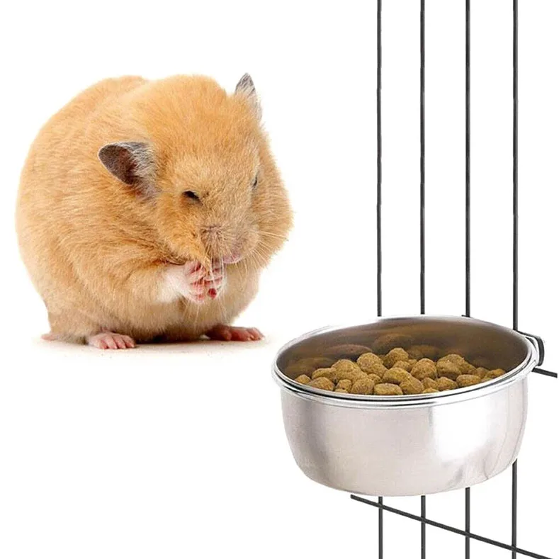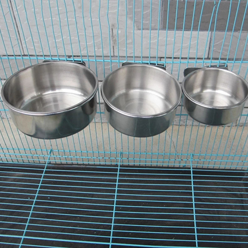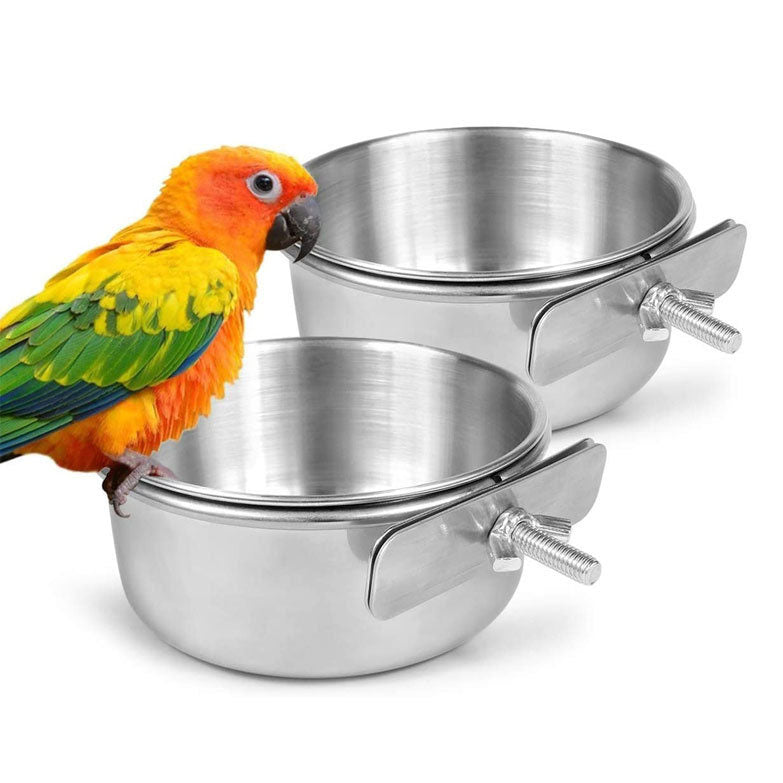Bird Feeding Cups Cage Hanging Bowl Stainless Steel Perches Play Stand with Clamp Bird Coop Cups Seed Water Dish