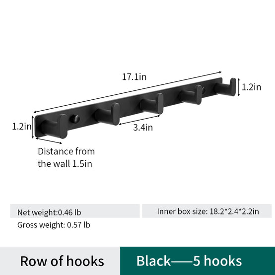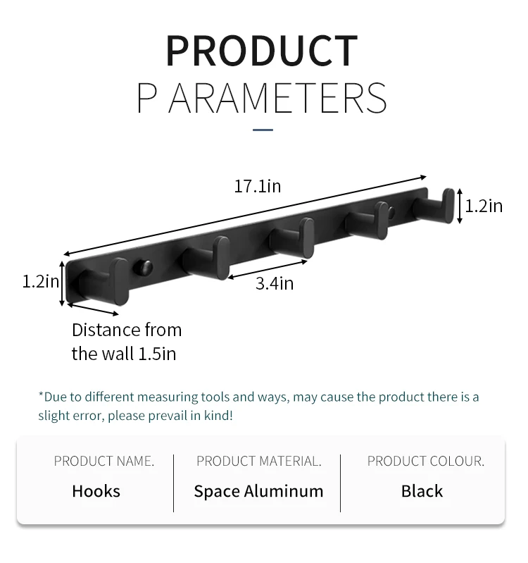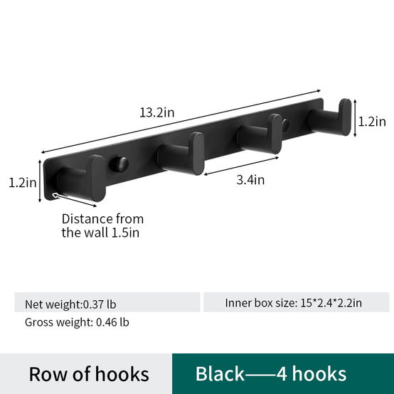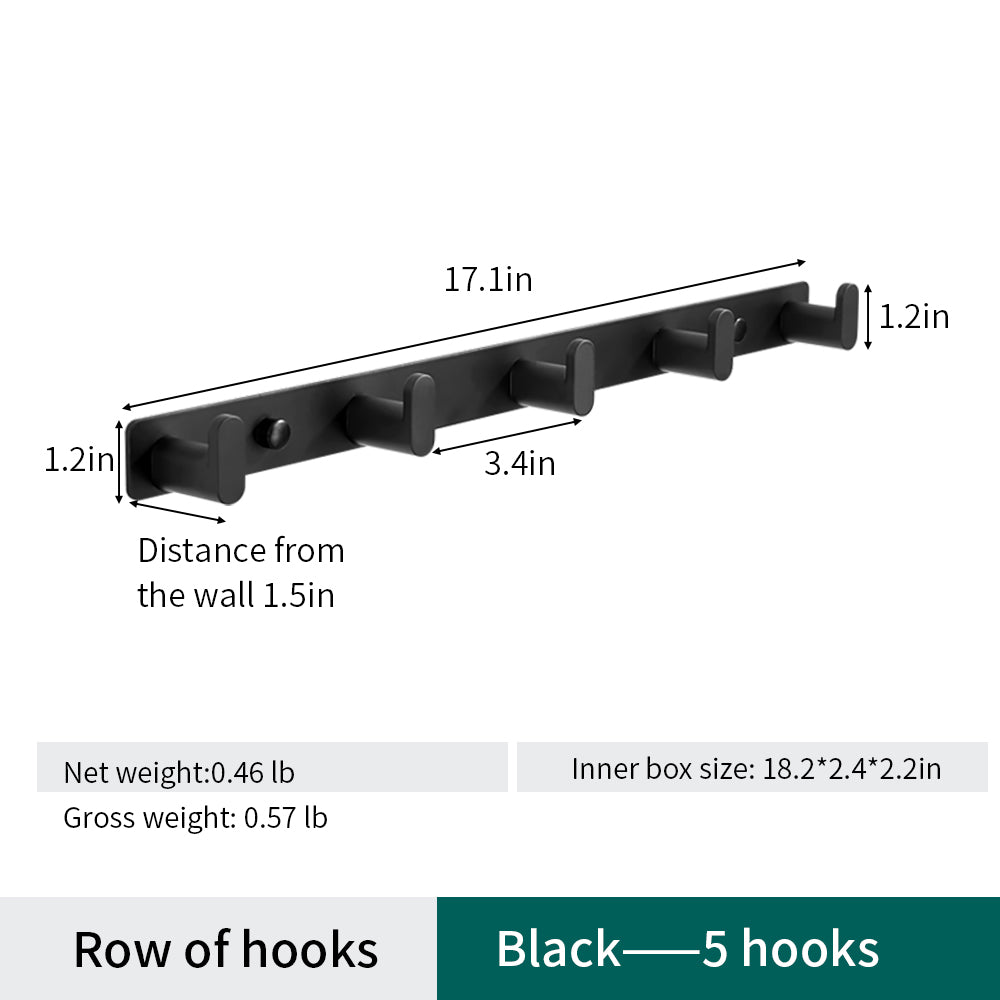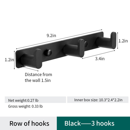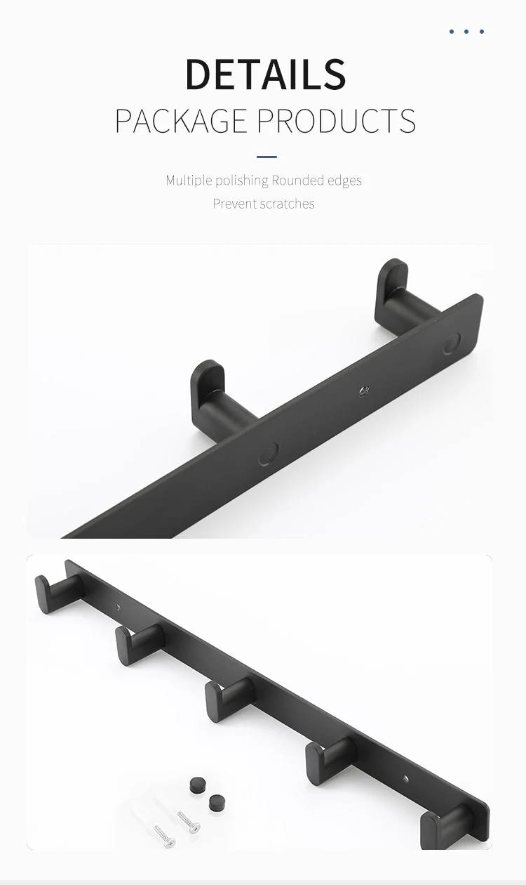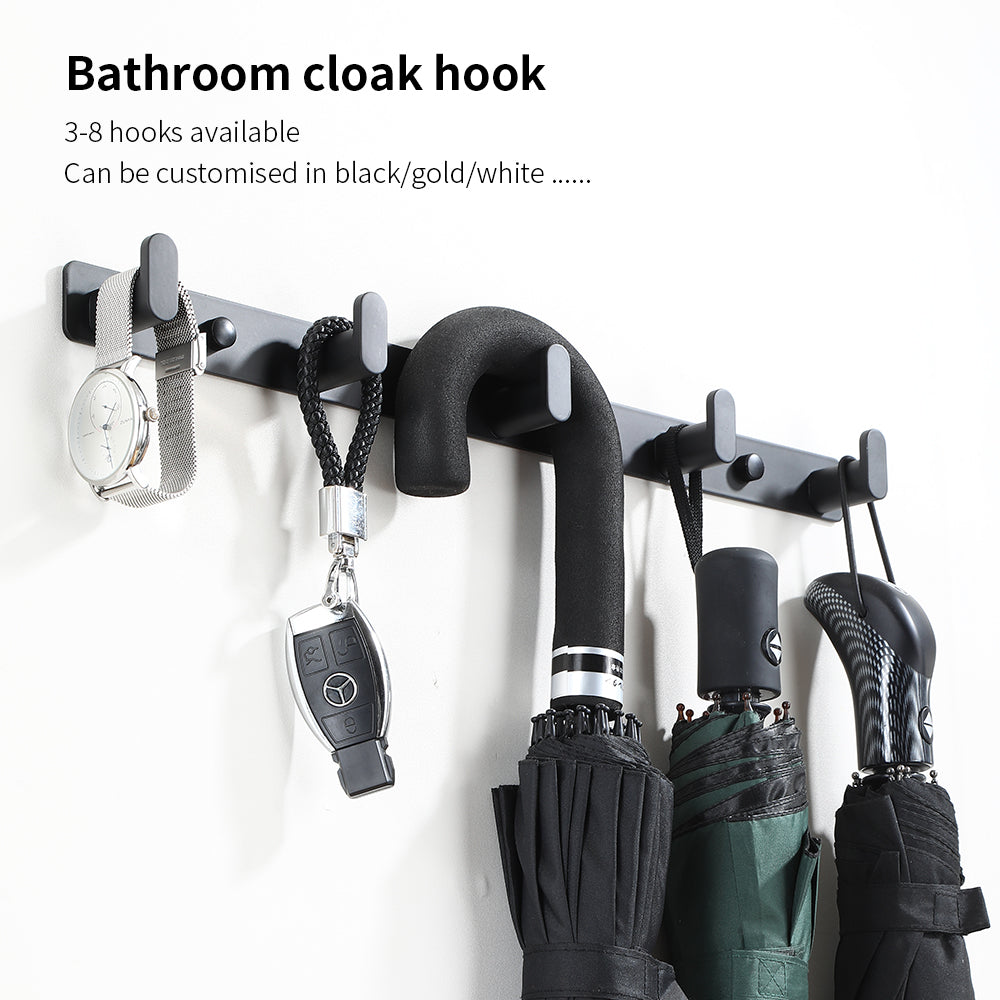 Black Nordic Decorative Wall Mounted aluminium Living Room Wardrobe Towel Coat Clothes Wall Hook