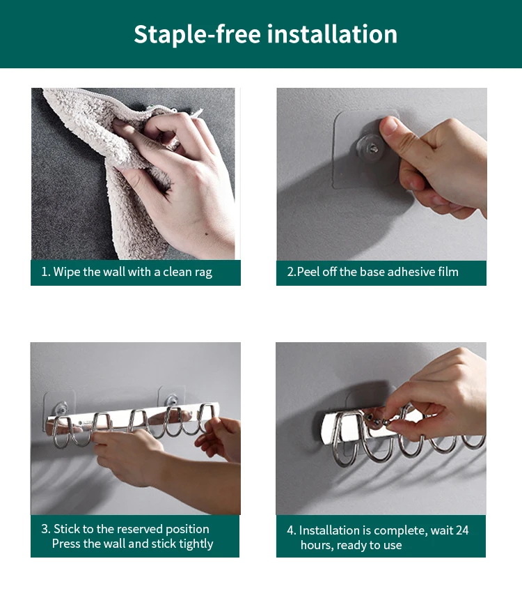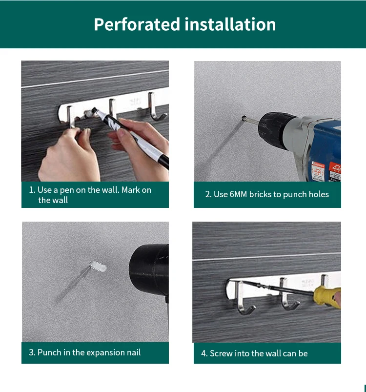 2、Hooks are available in a variety of sizes to meet various needs. 3、Its function is very powerful, and it can be installed in the kitchen to hang shovels, rags, etc. It can also be installed in the bathroom to hang towels, bath balls, etc.