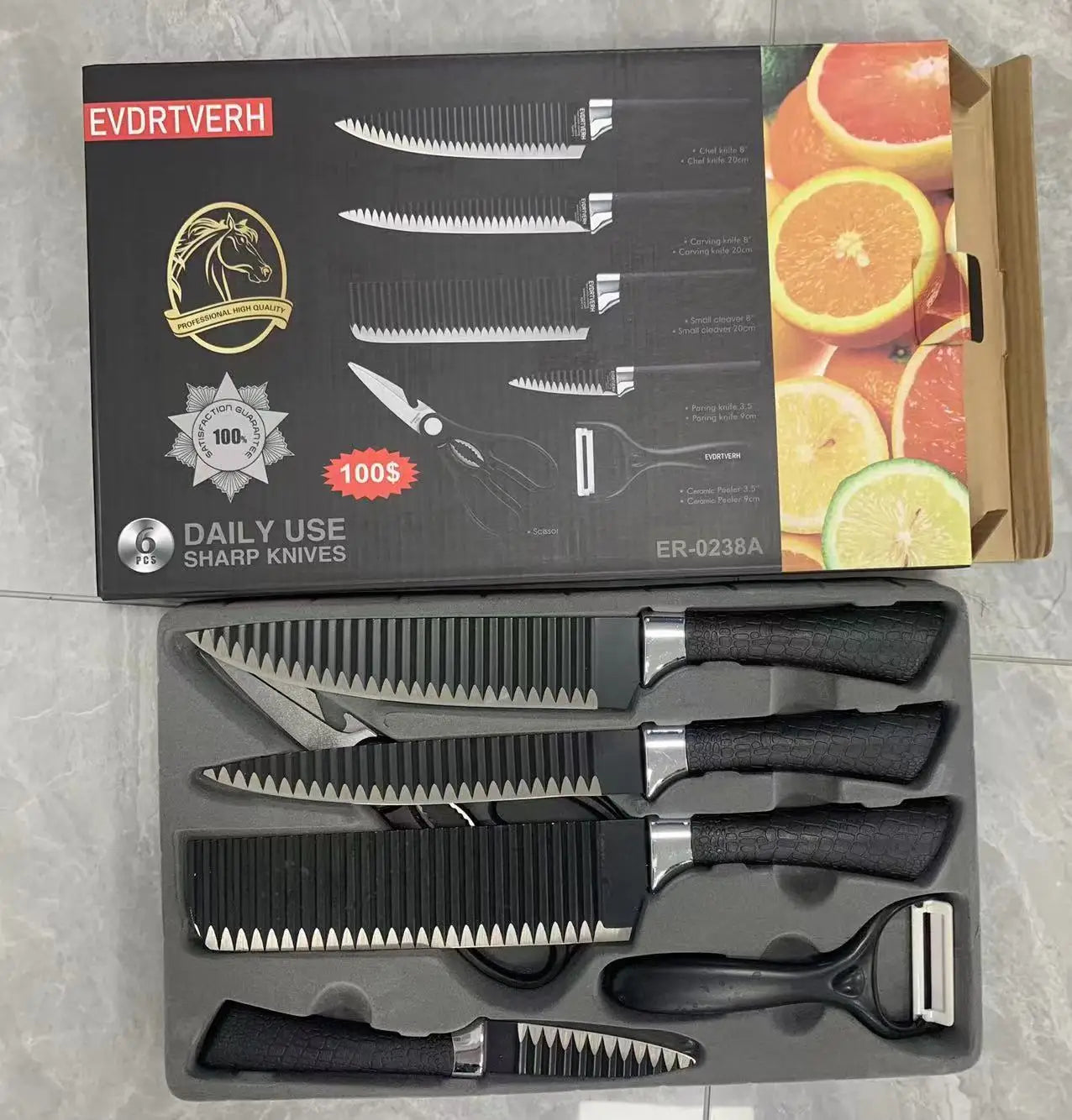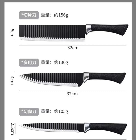 Black wavy six-piece knife set 238A stainless steel kitchen knife set foreign trade color box gift box