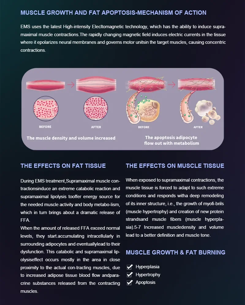 The 100% extreme muscle contraction of this technology can trigger a large amount of fat decomposition,Fatty acids are broken down