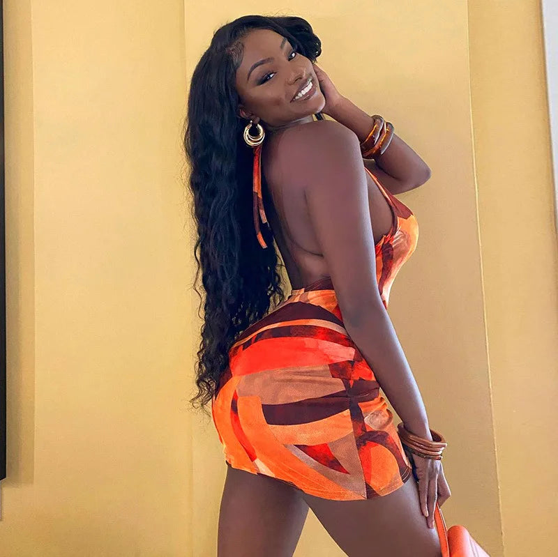 Bodycon Backless Print Halter Sleeveless Women 2024 Summer Fall Sexy Club Casual Clothing Lady Fashion Outfits Mini Dress