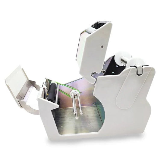 1. Hang the label paper roll. As shown in the figure, the label reel is hung on the label hanging plate and fixed by the positioning plate.