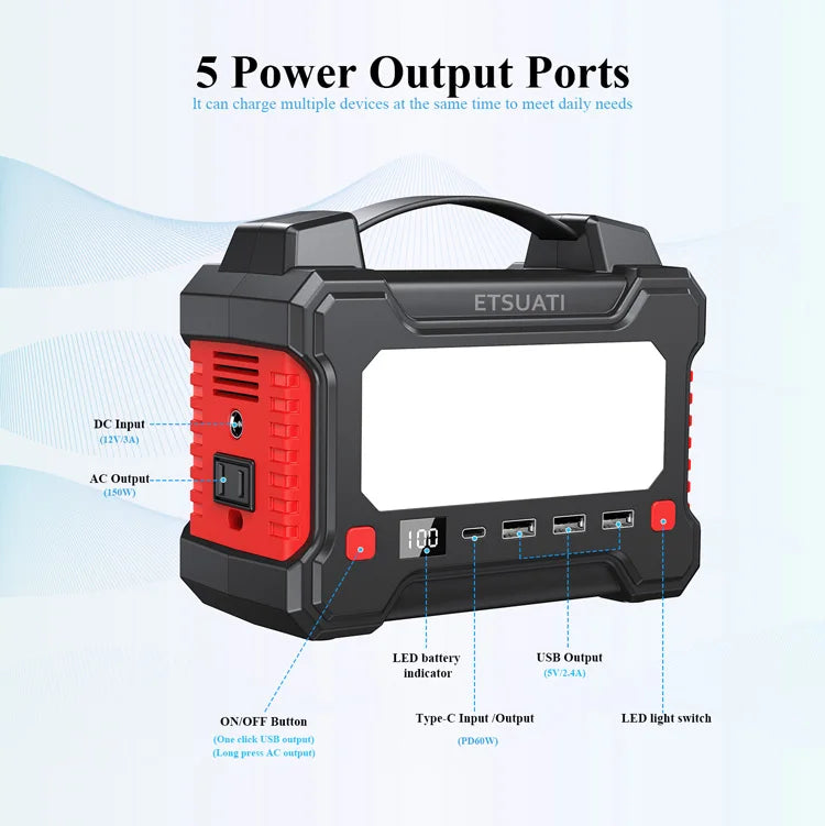 Brand Etsuati 50000mAh Portable Power Station 150W AC Output Portable Solar Generator PD 60W Solar Storage Power bank supply