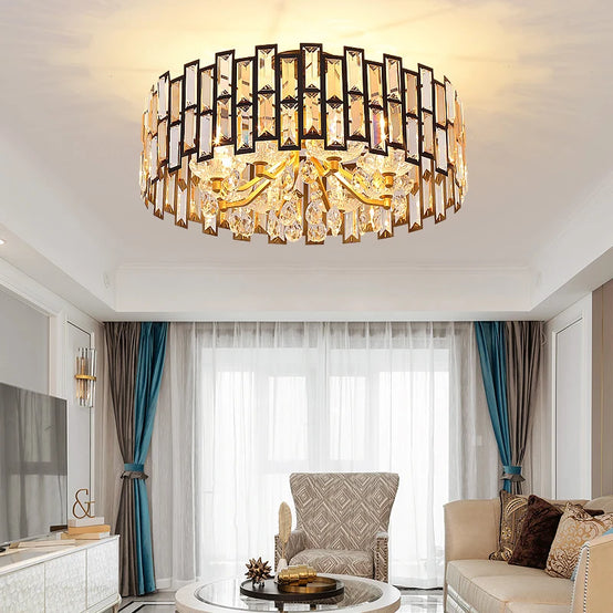Brand New Modern Round Golden Pendant LED Crystal Lustre for Restaurant Living Room Fancy Lighting Crystal Light Fixture