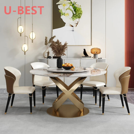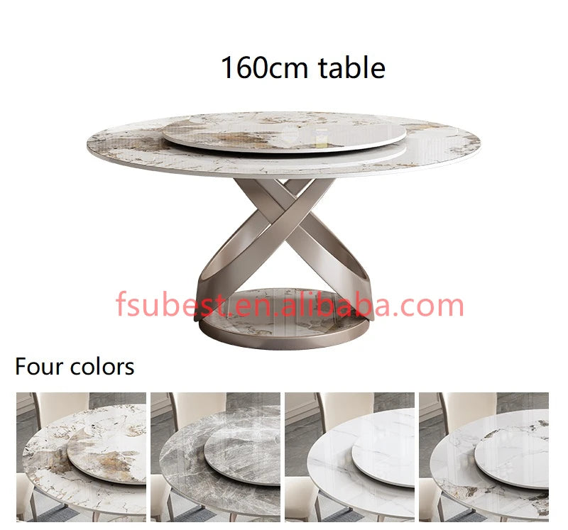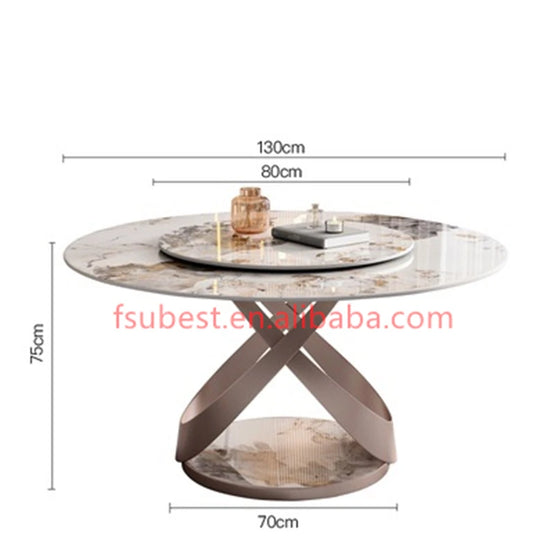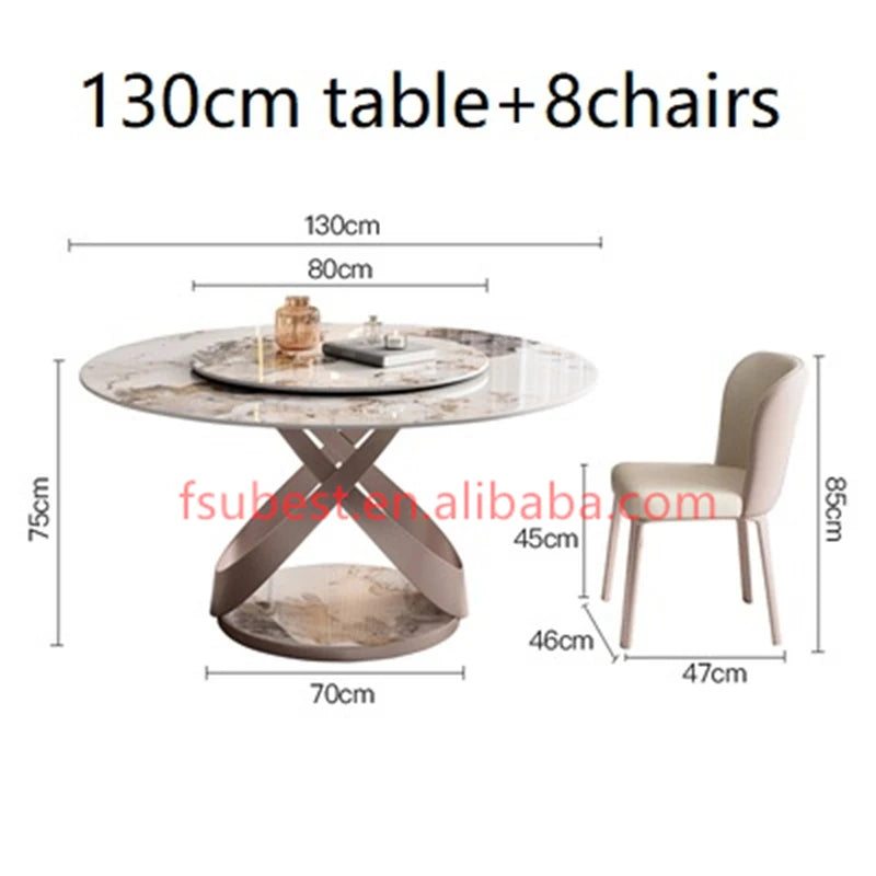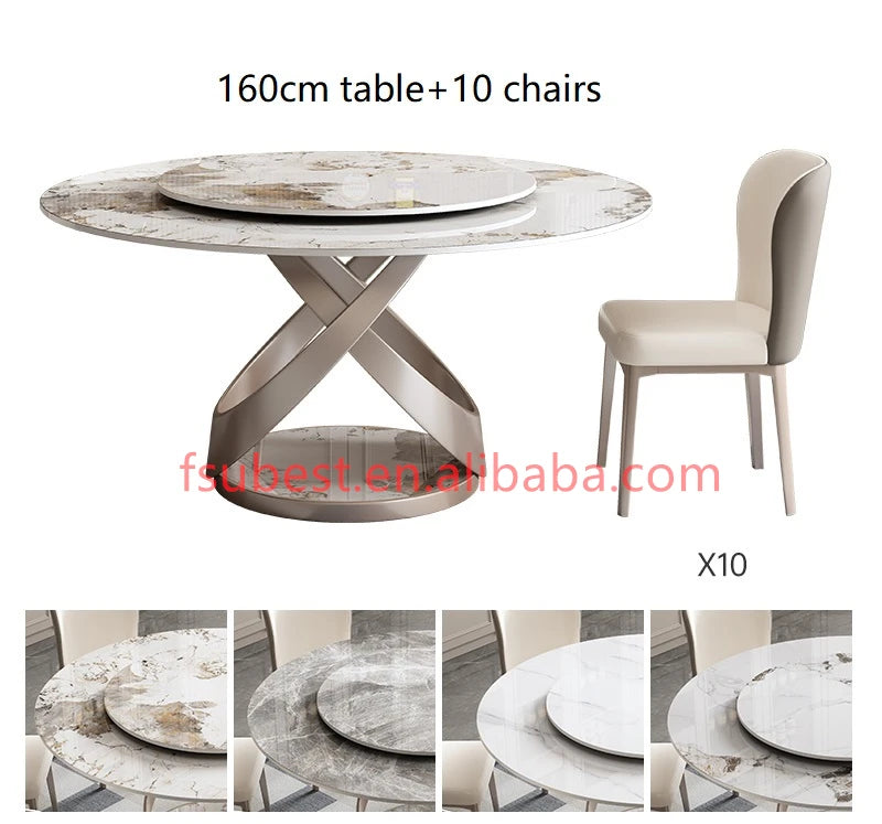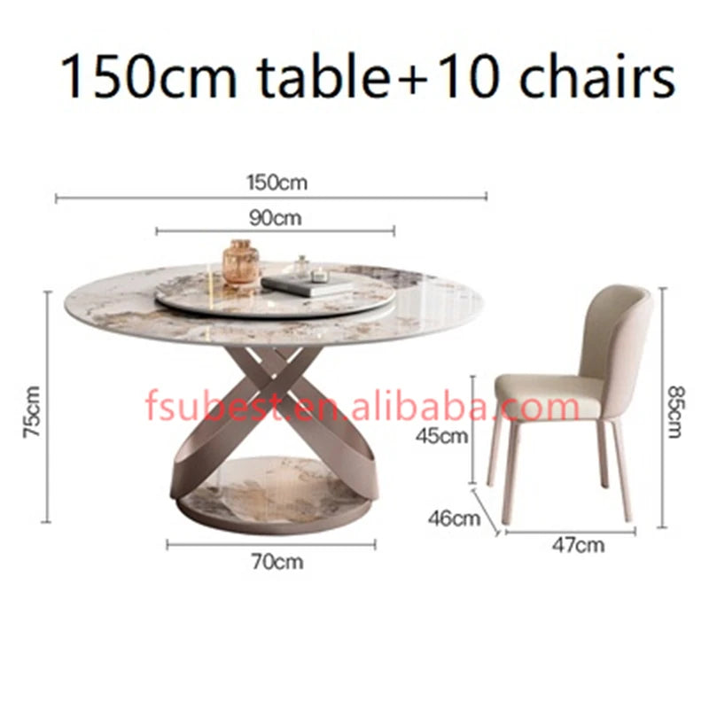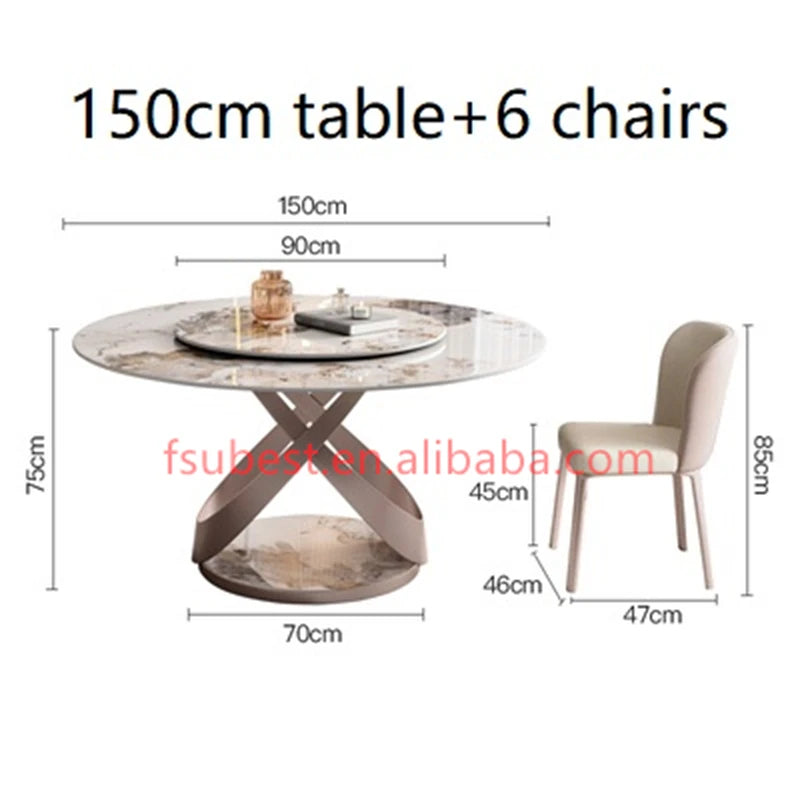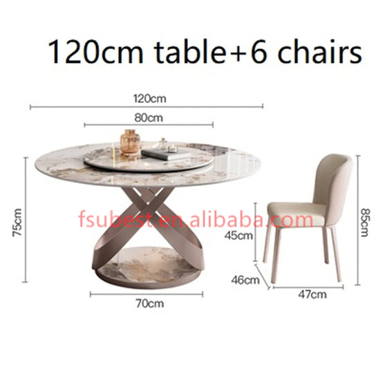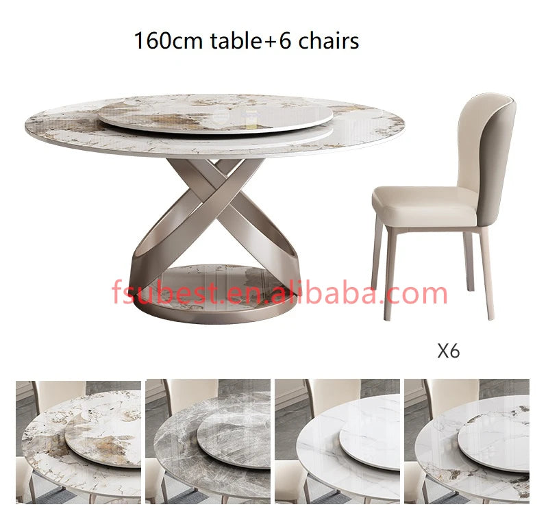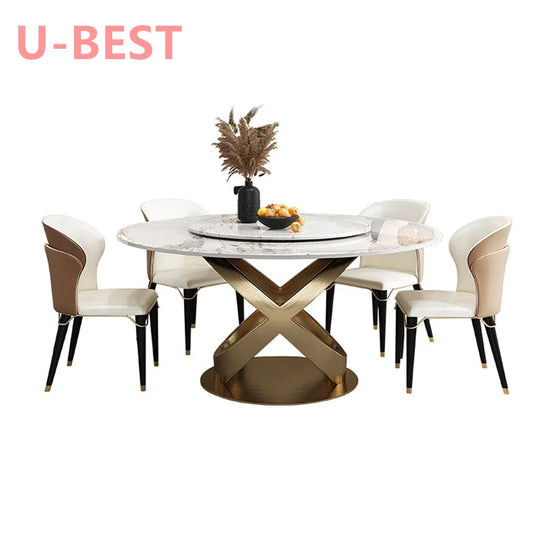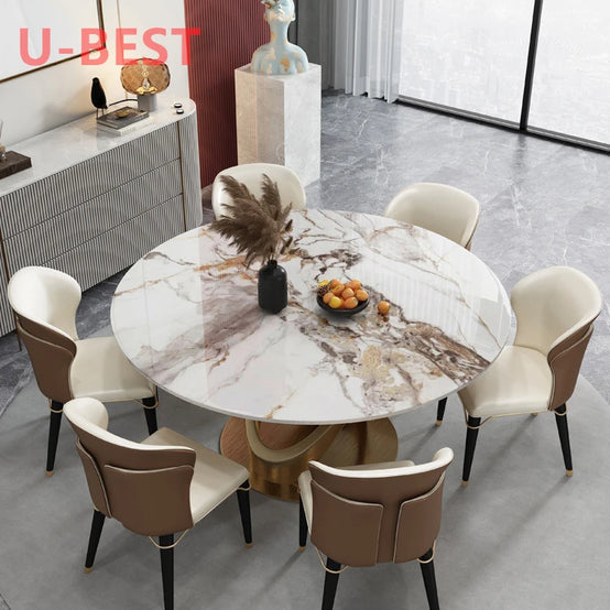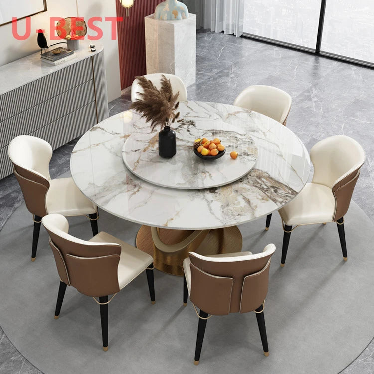Bright White Round Dining Table With Turntable Modern Minimalist Italian Light Luxury High-end Marble Stone Top Design Furniture
