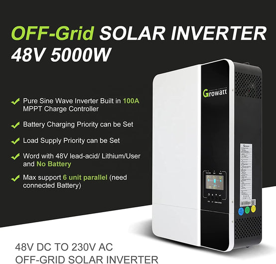 Built-in MTTP Split Phase Inverter 5000W 48V 120V 240V SPF 5000ES Growatt Off Grid Hybrid 5KW 10KW Pure Sine Wave Solar Inverter