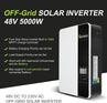 -【5000W solar inverter charger suitable for 48V batteries】Lead acid, lithium, use with battery and without battery. Solar inverter with three selectable charging modes, solar time/solar and utility/only solar; and four output modes, solar time/utility period/SBU