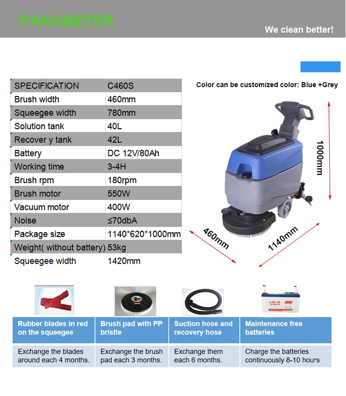 C460S Hot Sale Industrial Professional Compact Floor Scrubber Cleaning Machine Micro Floor Scrubber