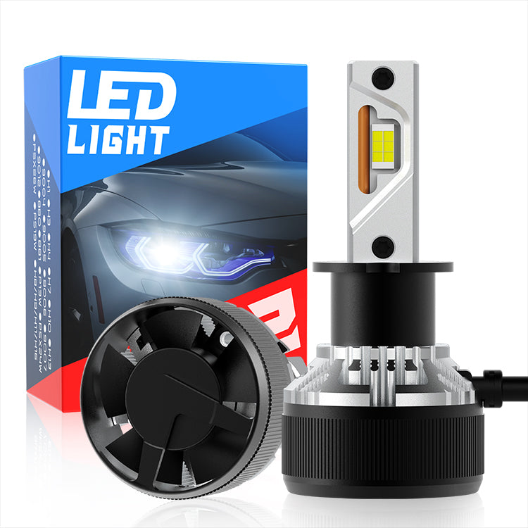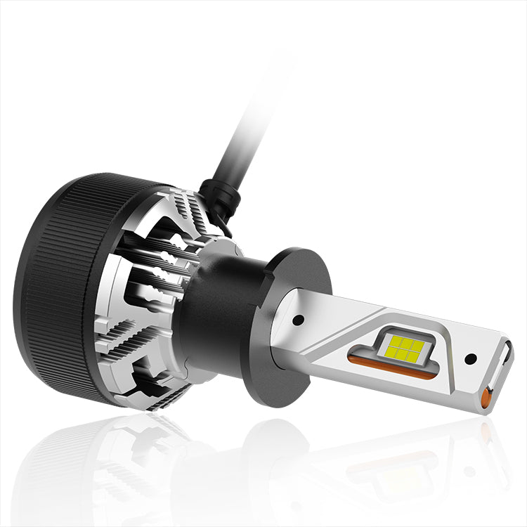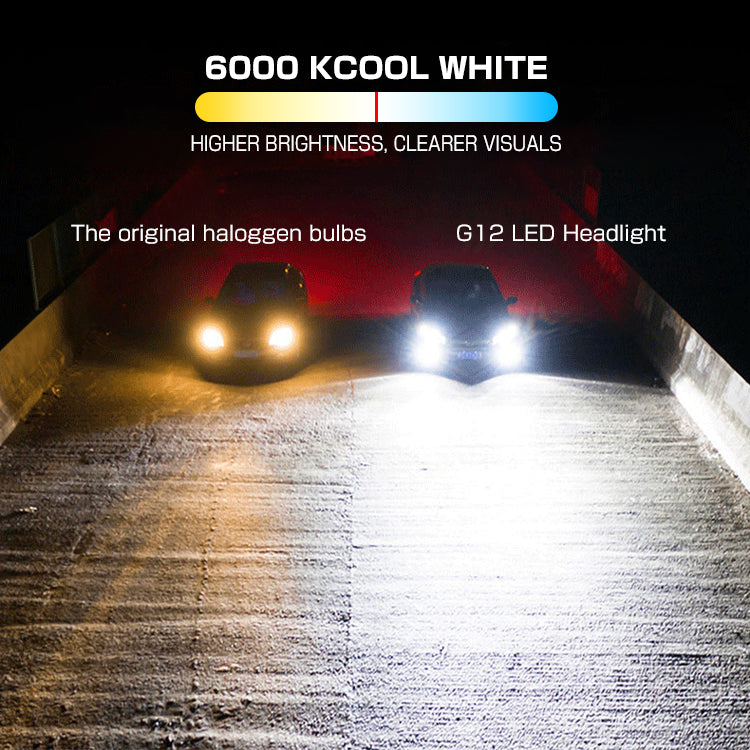 •High brightness G12 H3 LED headlight bulbs, CSP LED chips, 55W per bulb, High luminous efficacy flux up to 12000 LM per bulb, Even light pattern without any dark spot, Super bright light center