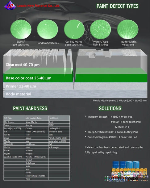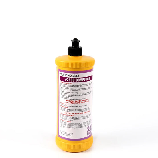 2500 Rubbing Compound is a medium cutting compound that works to remove P1200 and finer sand scratches in automotive paints including clear coats. A mid-tier compound that can also remove minor imperfections in painted surfaces or solid surfaces material counter tops.