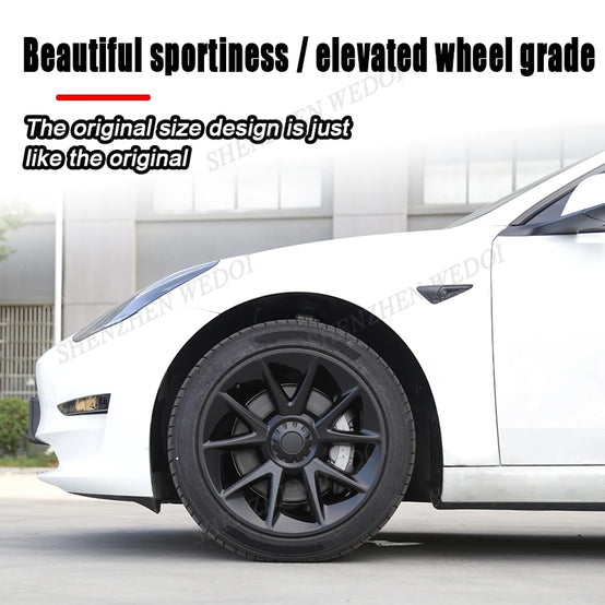 Car Wheel Cover Black Finish Wheel Hubcap Rim Cover Easy To Install For Tesla Model Y Wheel Cover 19 Inch Exterior Accessories