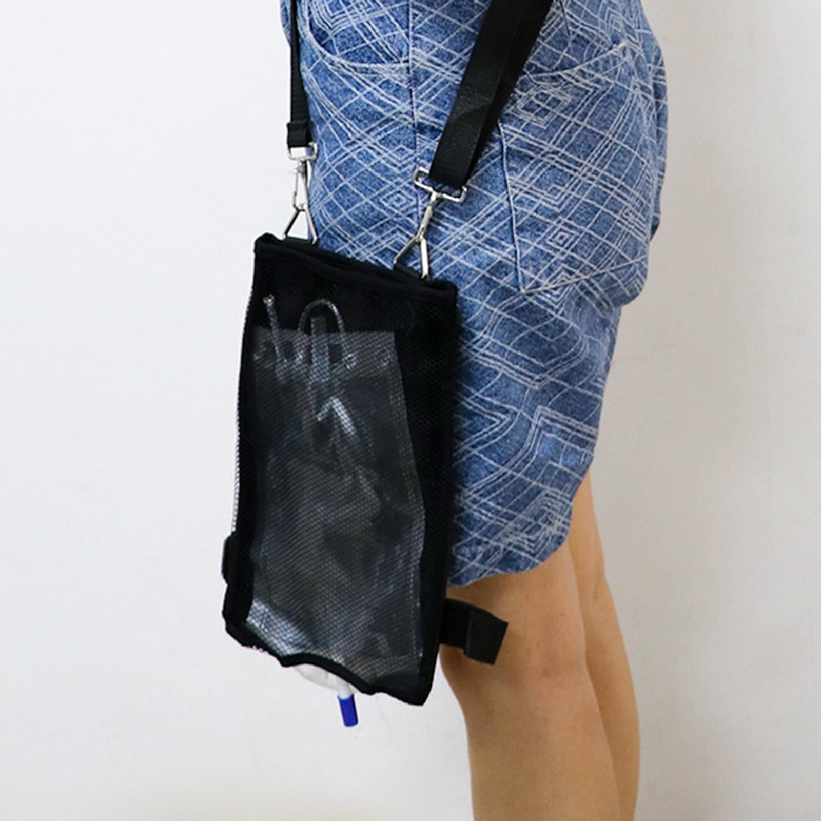 - Adjustable: Urine Drainage Bag Holder with shoulder strap 100cm to 193cm adjustable. Elastic leg fixed webbing, the tension is freely adjusted, leg fixing belt buckle design can fix the urine bag without shaking.