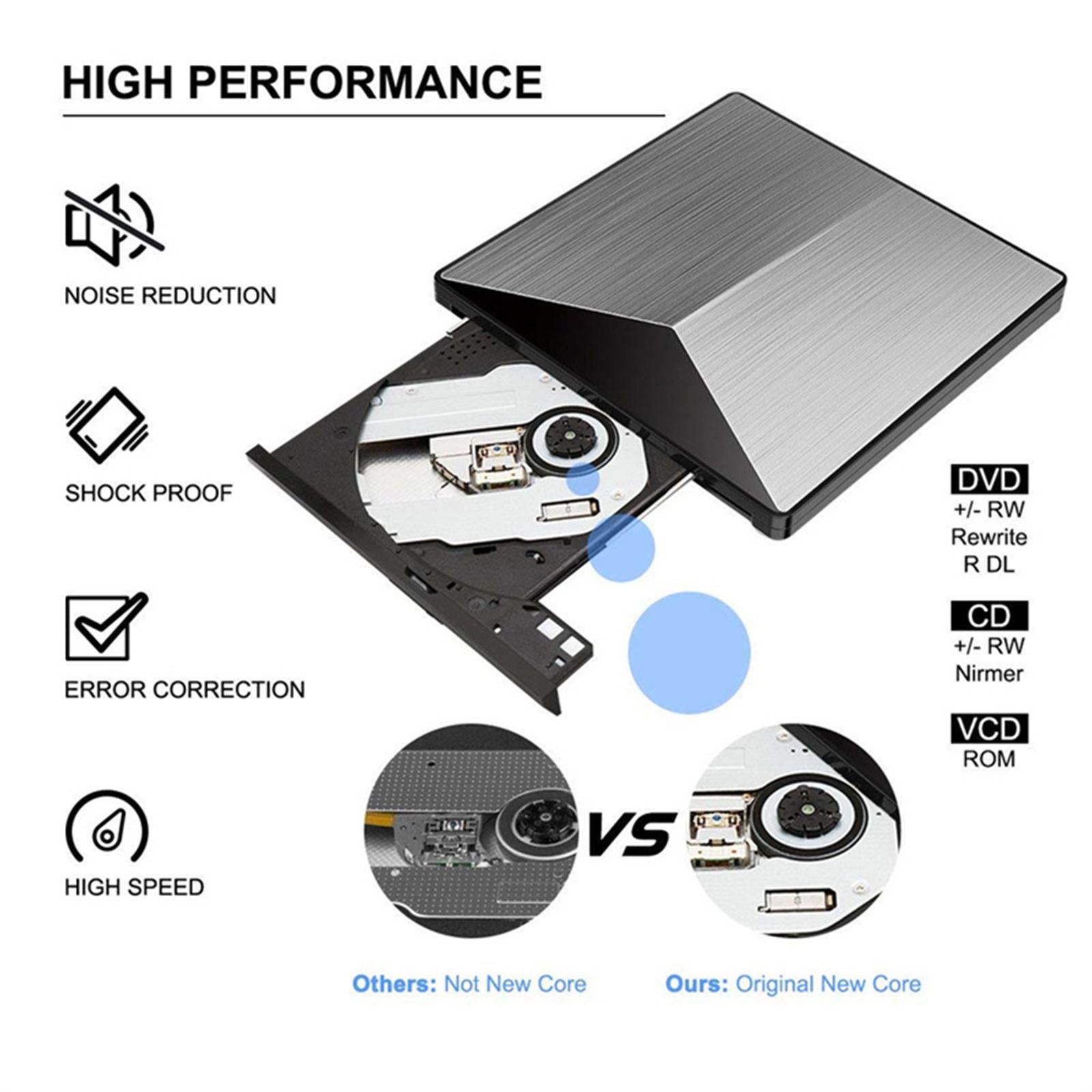 - Convenience: The portable cd dvd drive has strong error correction capability, anti shock and noise reduction technology, low power consumption.