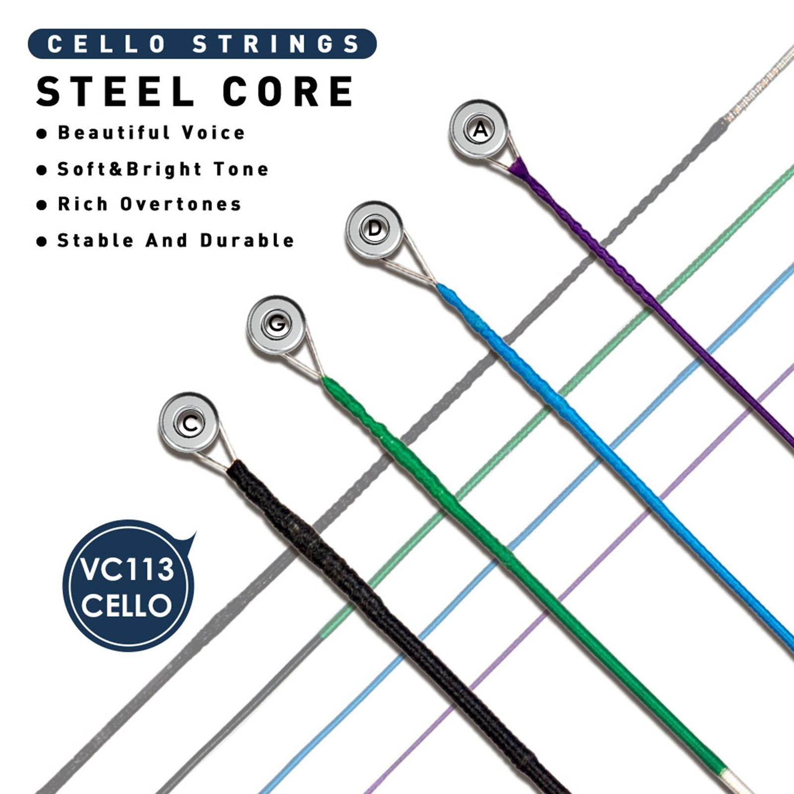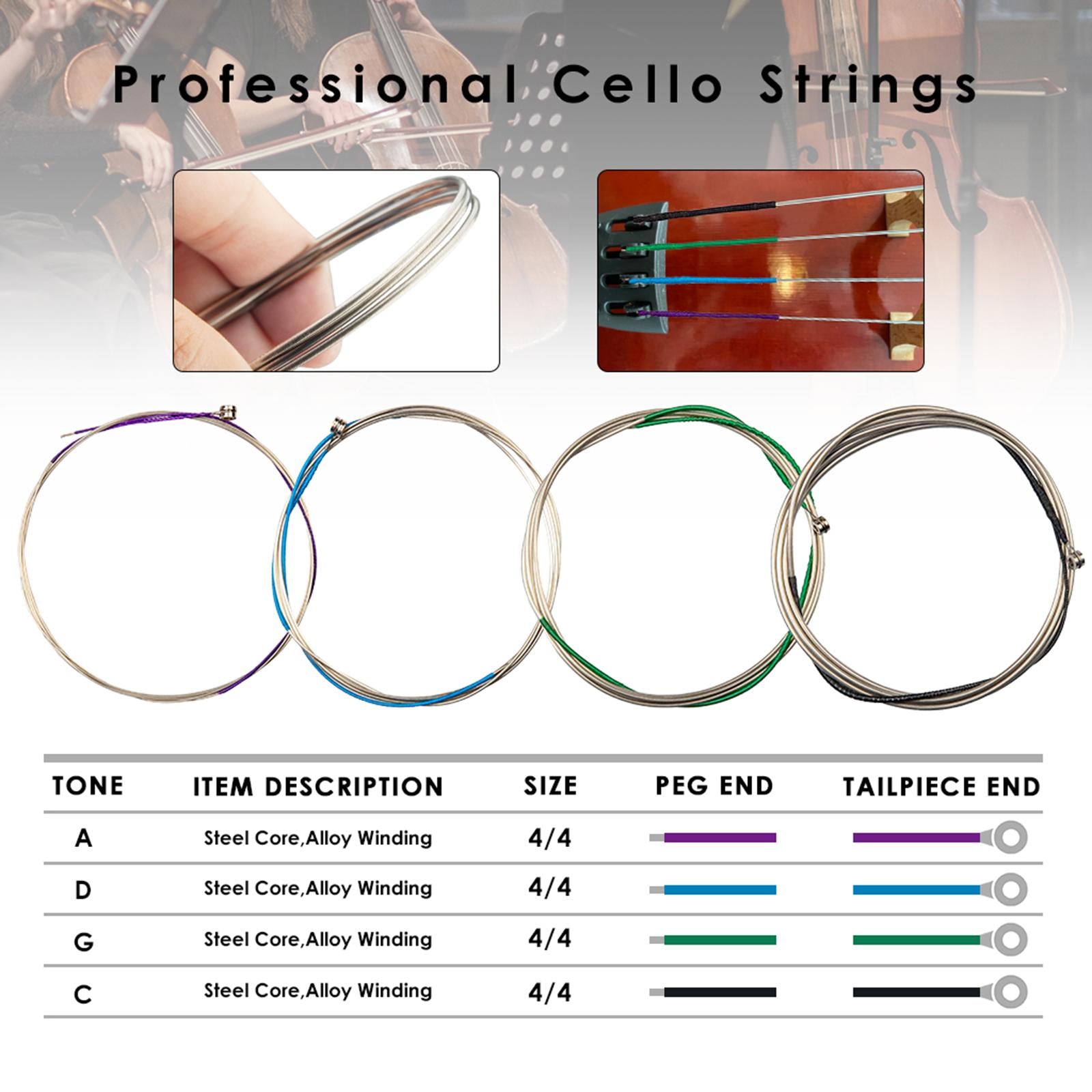 Cello Wire Strings Fittings Accessories Set for Musical Instrument Adults 1/4 1/2