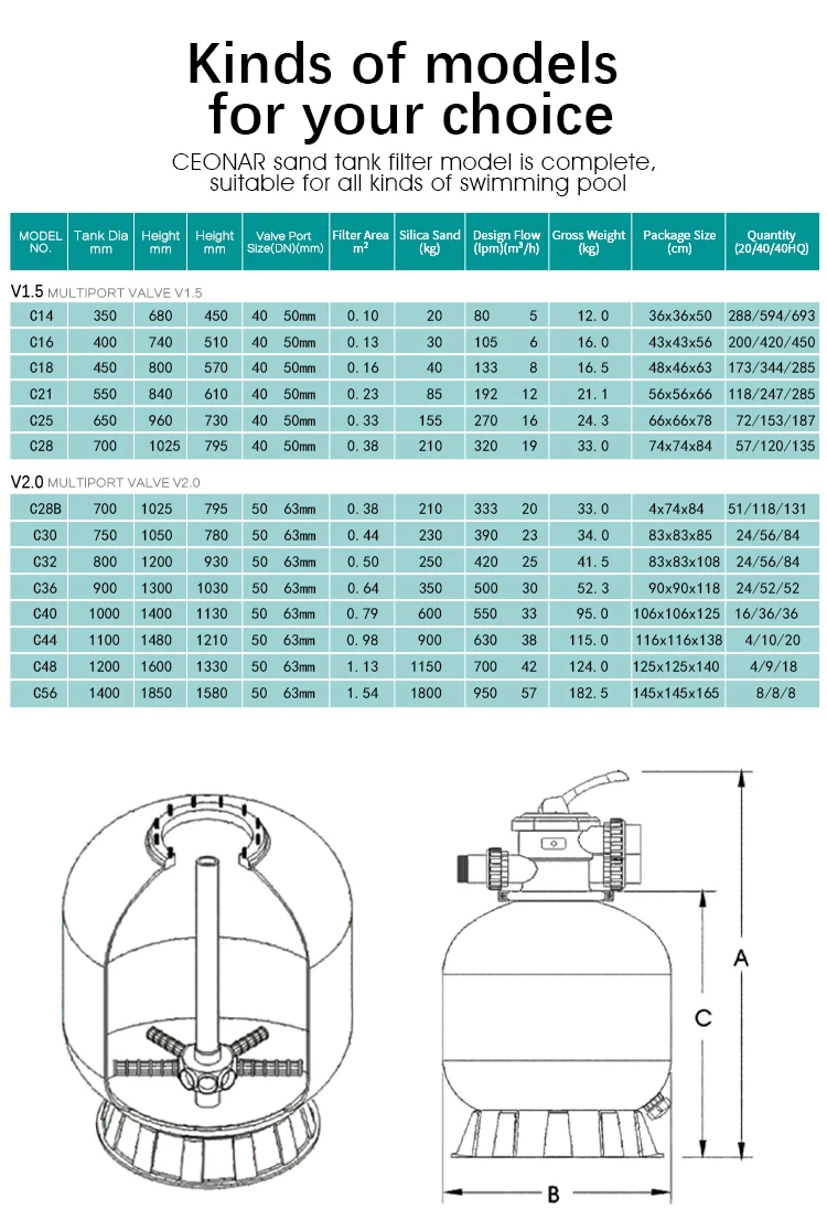 Ceonar pool sand filter housing swimming pool filter sand spa pool filter