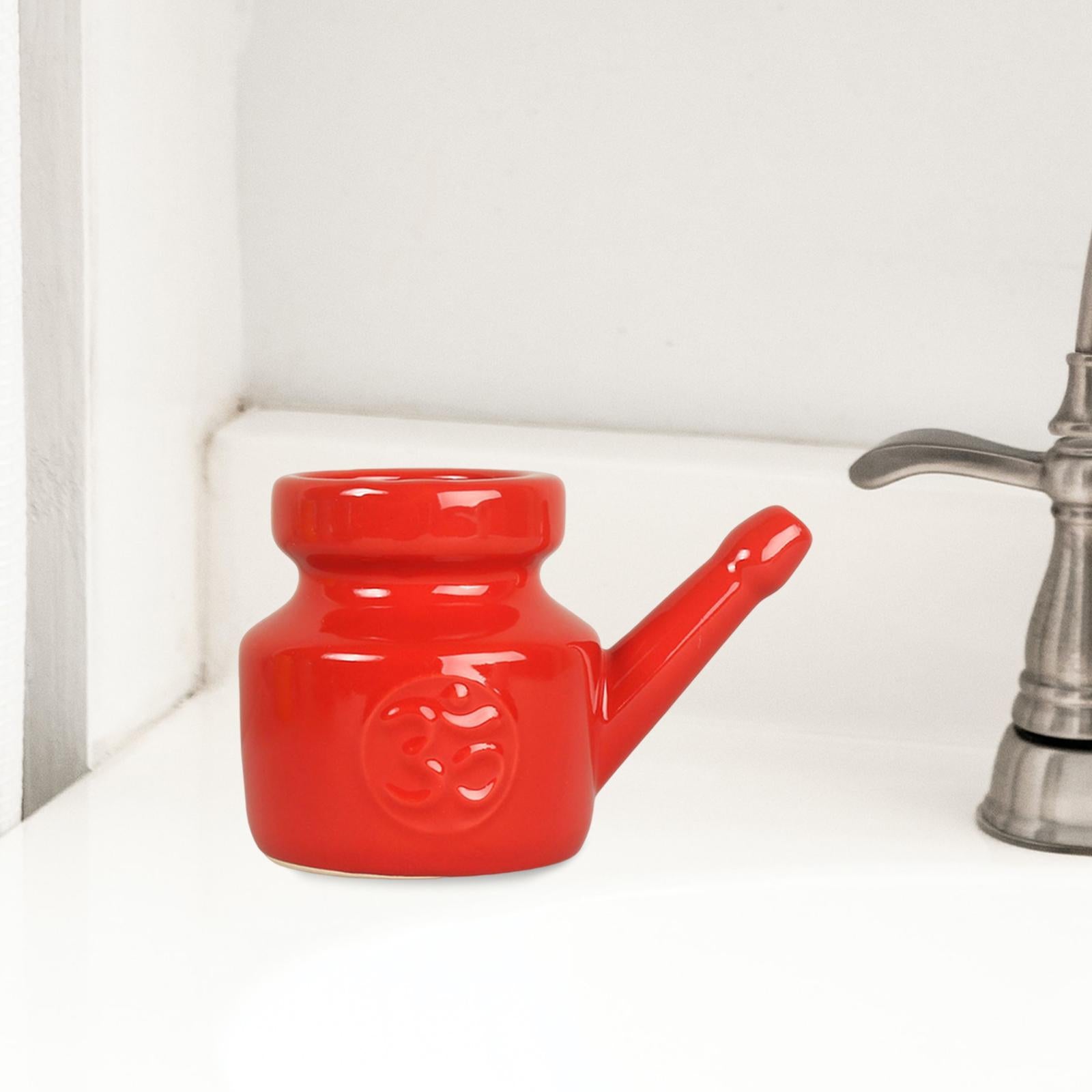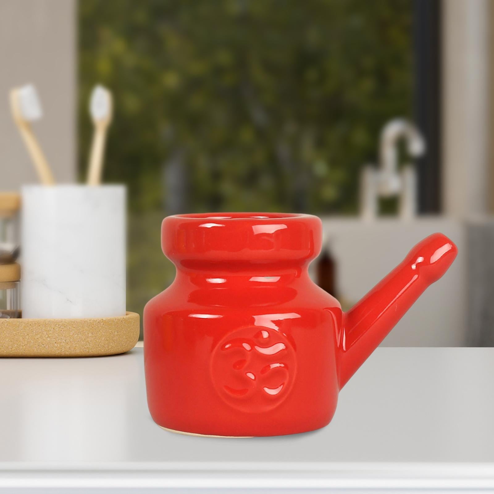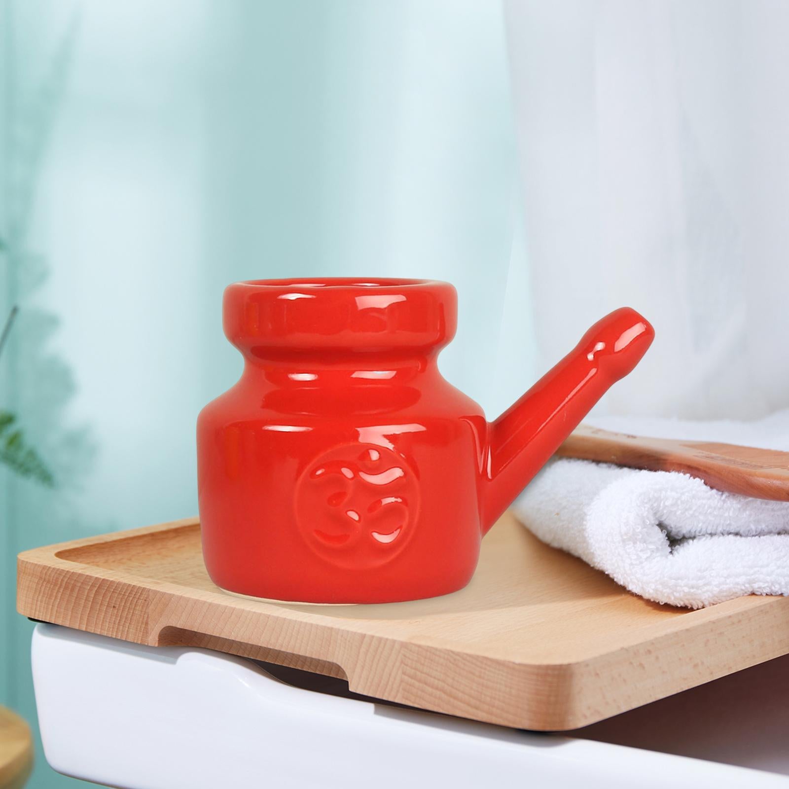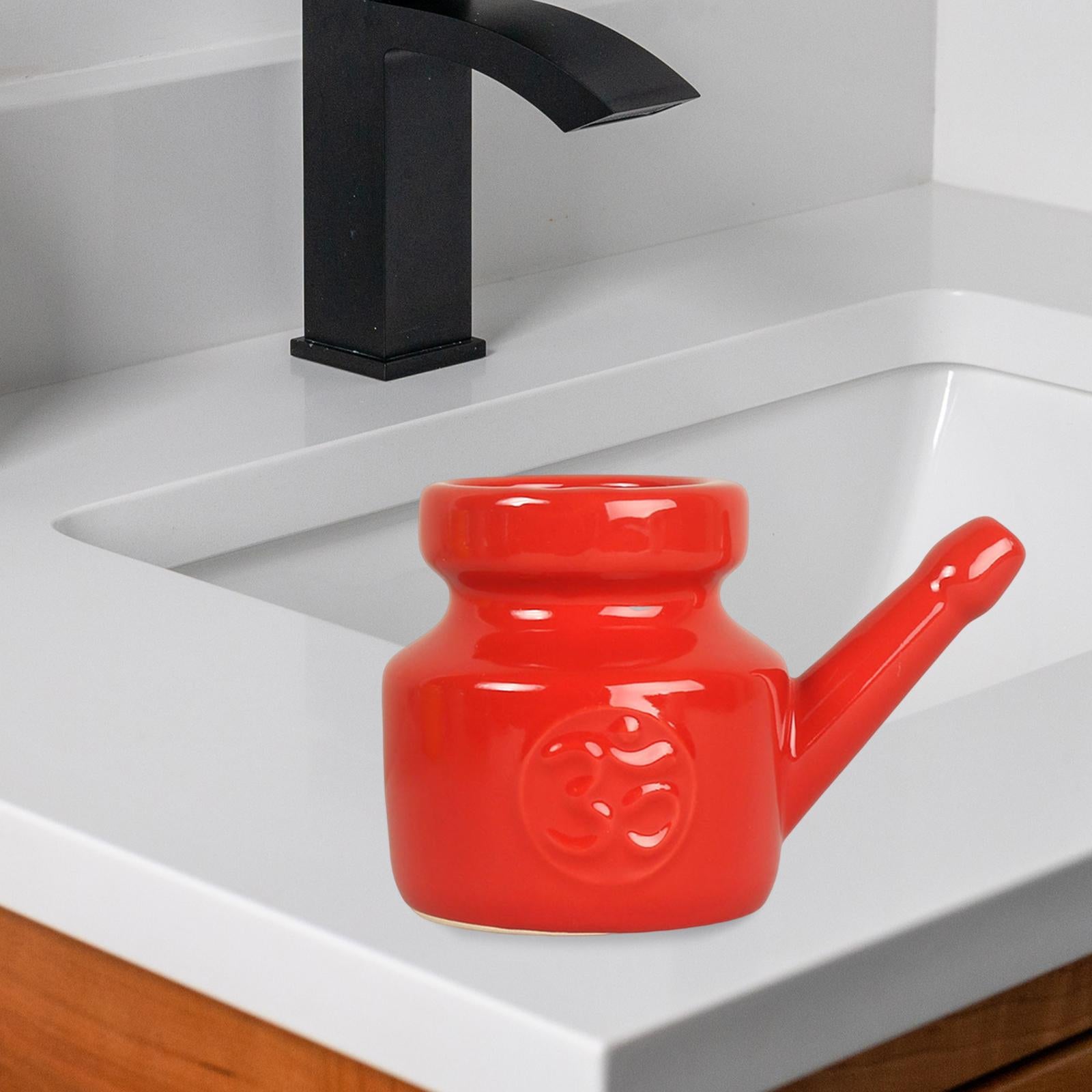 Ceramic Neti Pot Leakproof Sinus Rinse Pot Durable for Nasal Cleansing 350ml Red