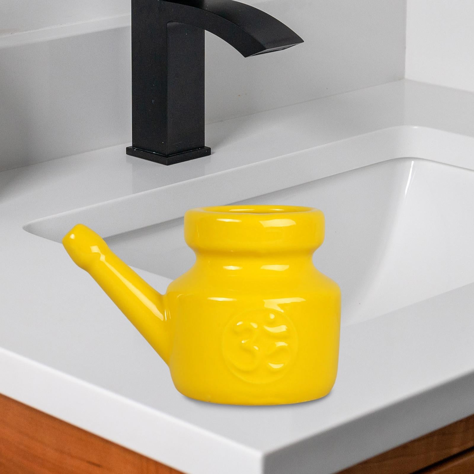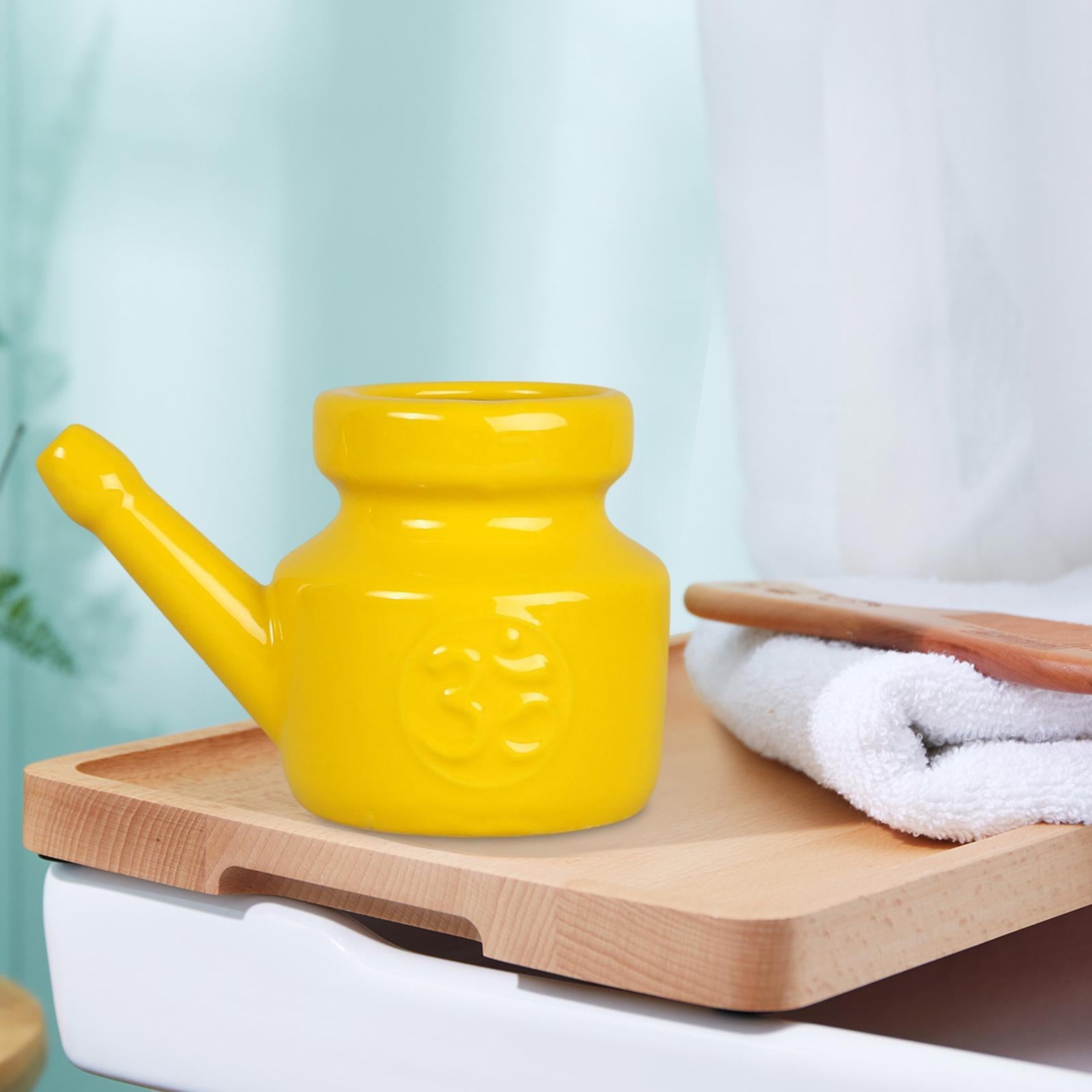 Ceramic Neti Pot Leakproof Sinus Rinse Pot Durable for Nasal Cleansing 350ml Yellow