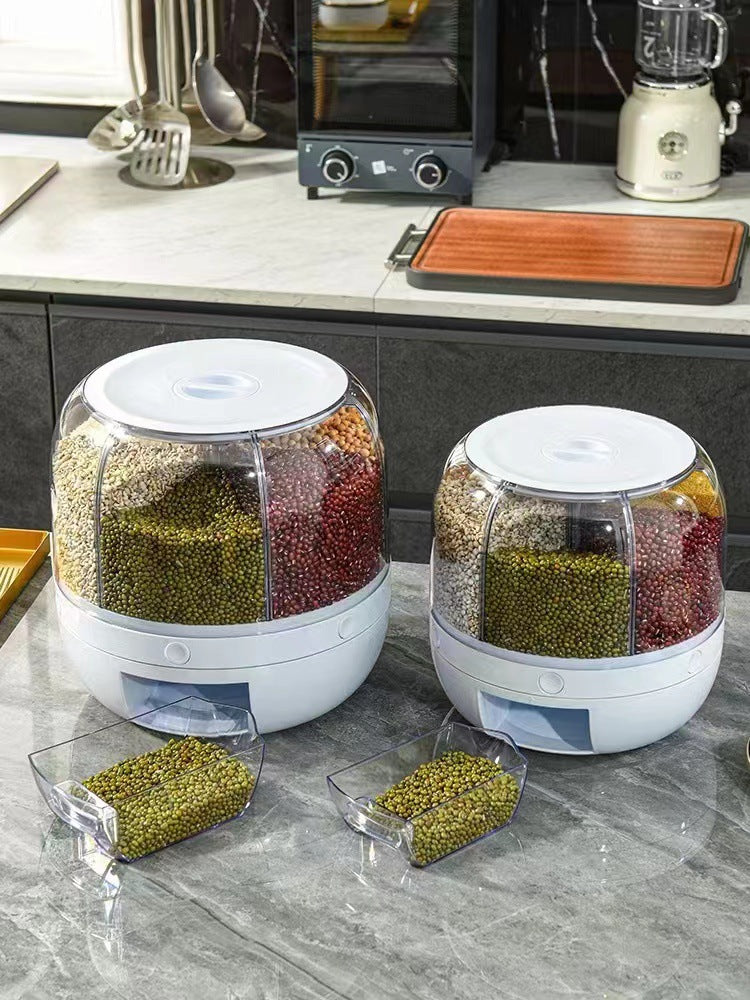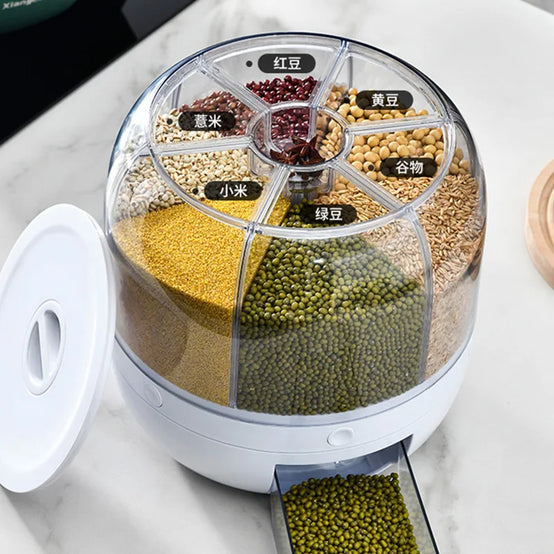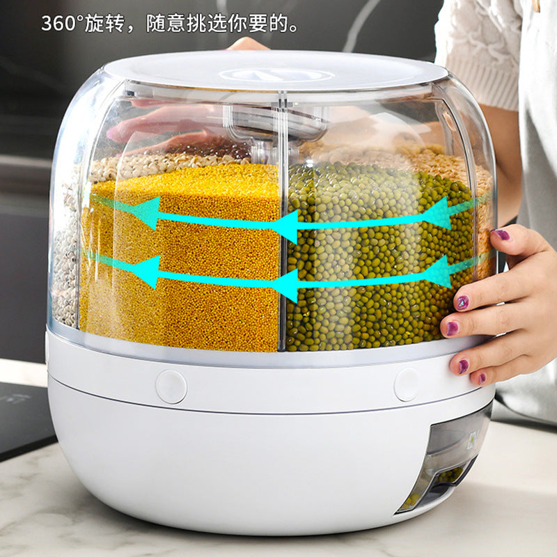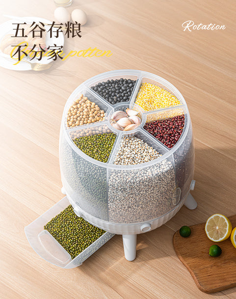 Cereal Rice Container Storage Upgrade 6 Compartment 360 Rotating Grain Storage Food Dispenser with Lid Moisture Resistant