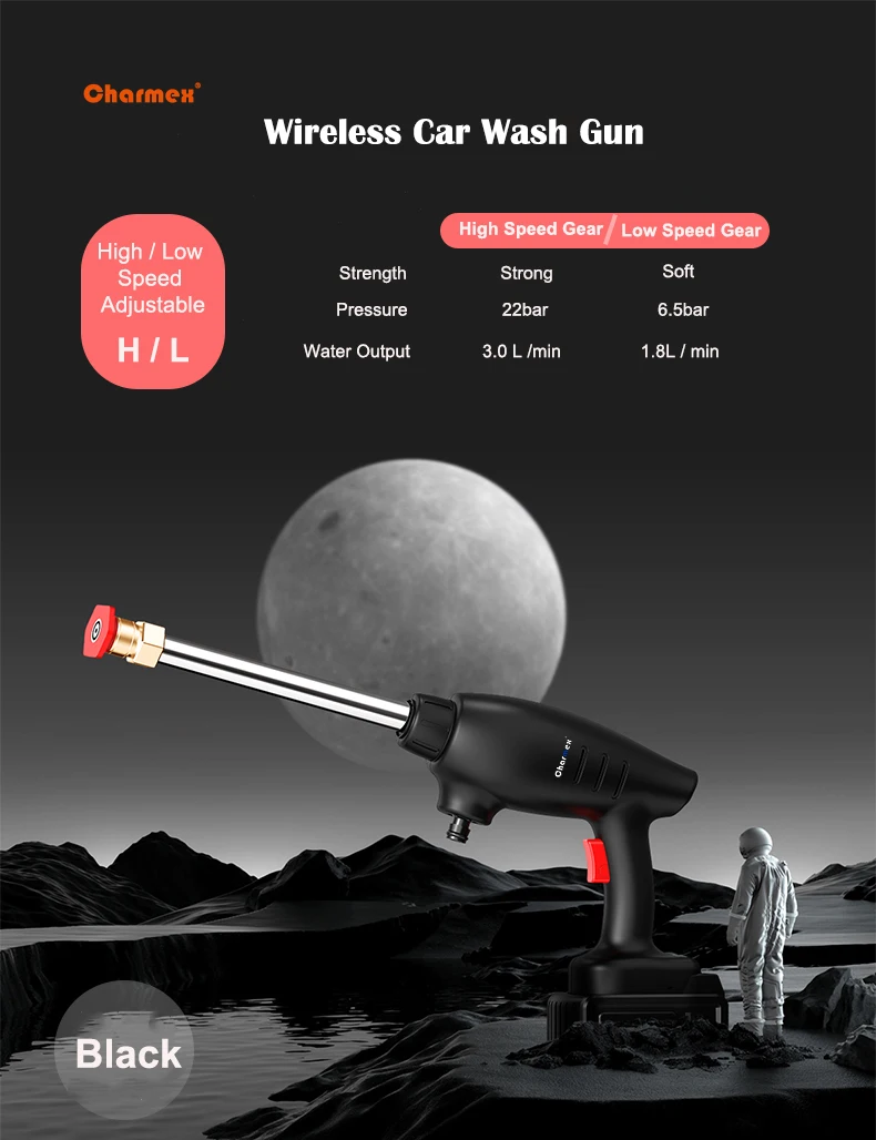1. Two types cordless and electric car washer gun: easy to carry, suitable for family use;