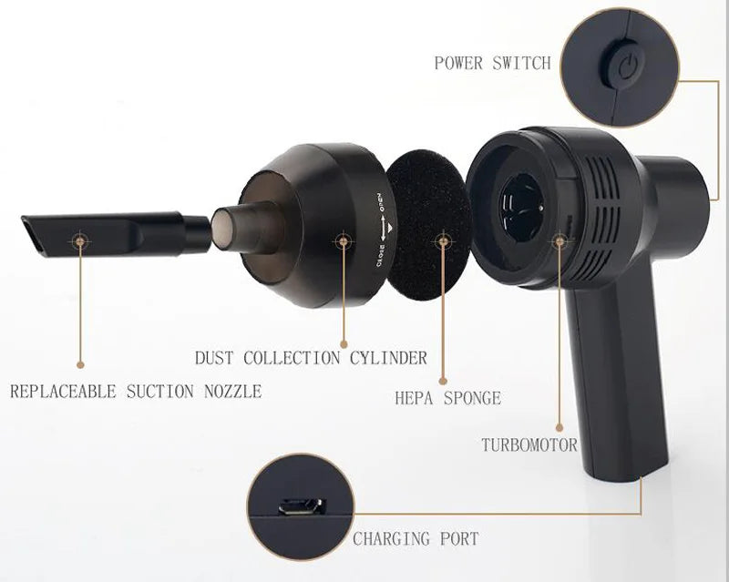 - Powerful Suction: Rechargeable vacuum cleaner with 2000mAh Li-battery provides powerful suction, cleaning dust, hairs, crumbs, scraps for laptop, mechanical keyboard, piano, makeup bag, car, pet house;
