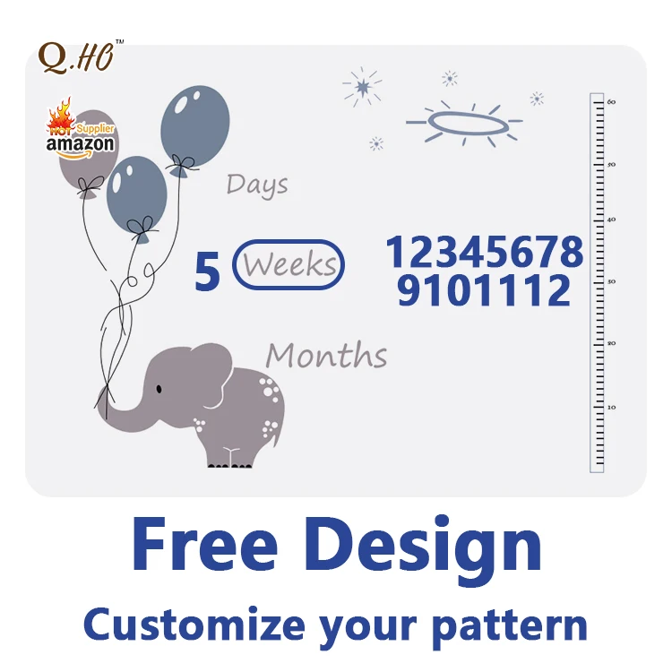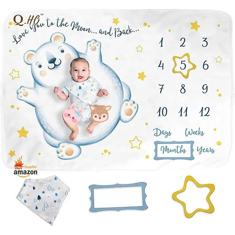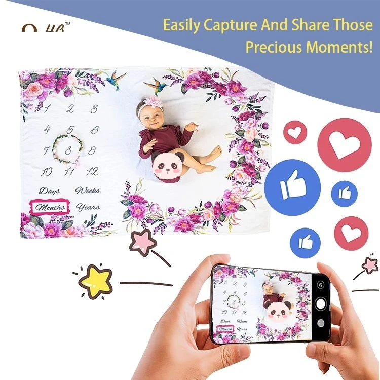 China Factory Super Soft Customized Girl Boy Infant Fleece Flannel Polyester Elephant Photo Baby Monthly Milestone Blanket