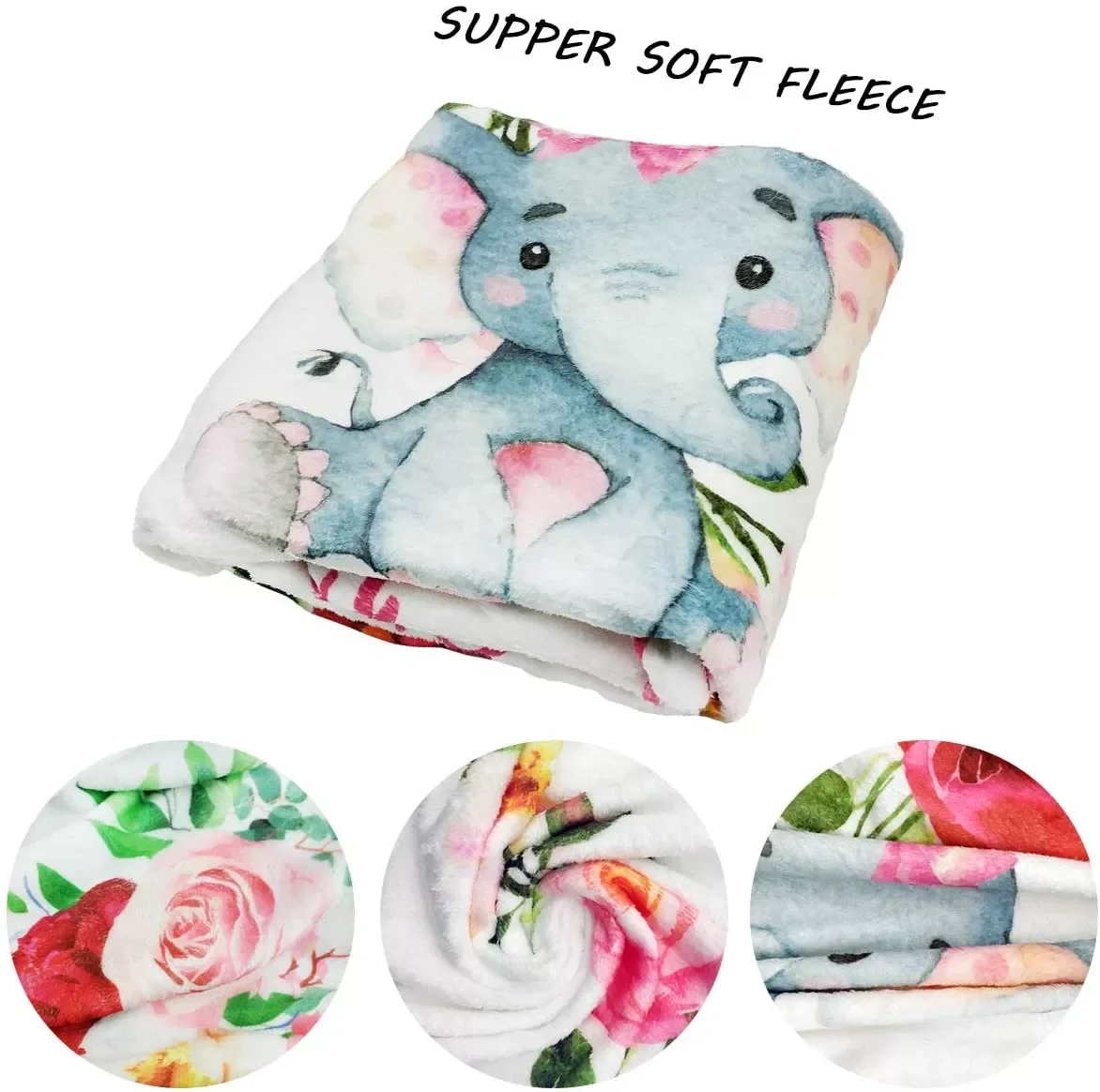 China Factory Super Soft Customized Girl Boy Infant Fleece Flannel Polyester Elephant Photo Baby Monthly Milestone Blankett