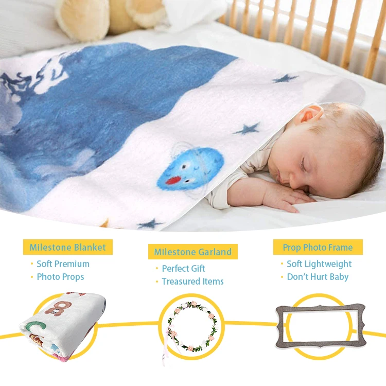 Custom Newborns Soft Customized Kids Infant Flannel Polyester Photoshoot Cartoon Animal Photo Baby Monthly Milestone Blanket