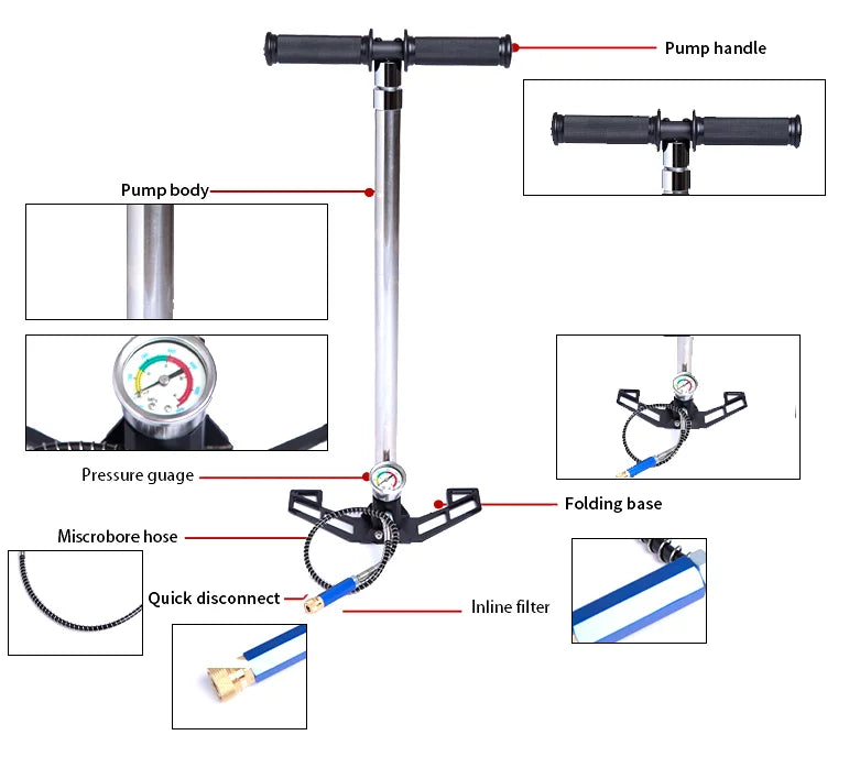 🔶Easy Monitoring: Supplied with glycerin filled high accuracy gauge which can accurately monitor the pressure level. pcp hand pump will be more secure and reliable to use.