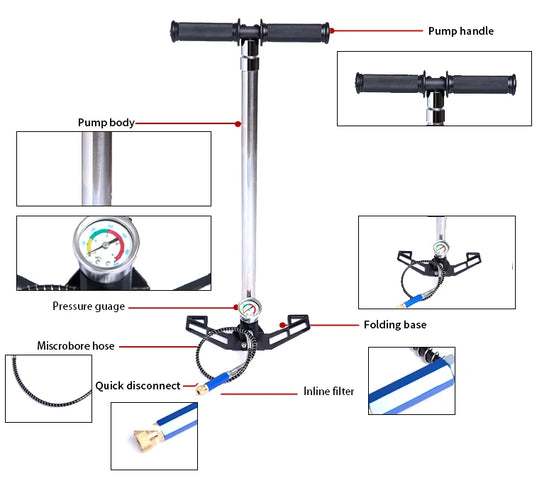 🔶Labor-saving Design: 4-stage air guun PCP hand pump’s high pressure can be up to the maximum pressure can reach 30MPa/4500PSI. Labor-saving, fast and reliable